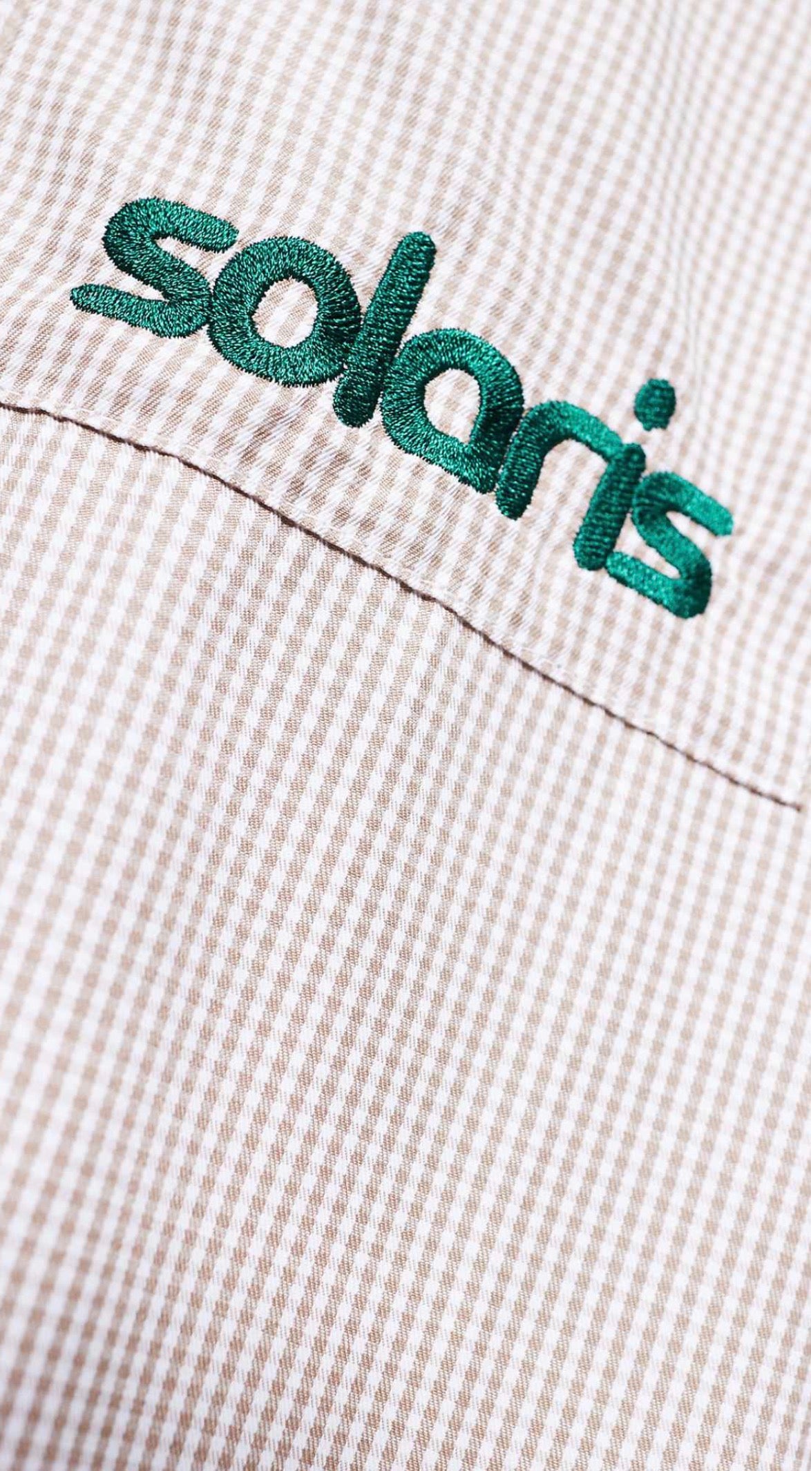 ASOS DESIGN boxy oversized check shirt with chest embroidery in beige