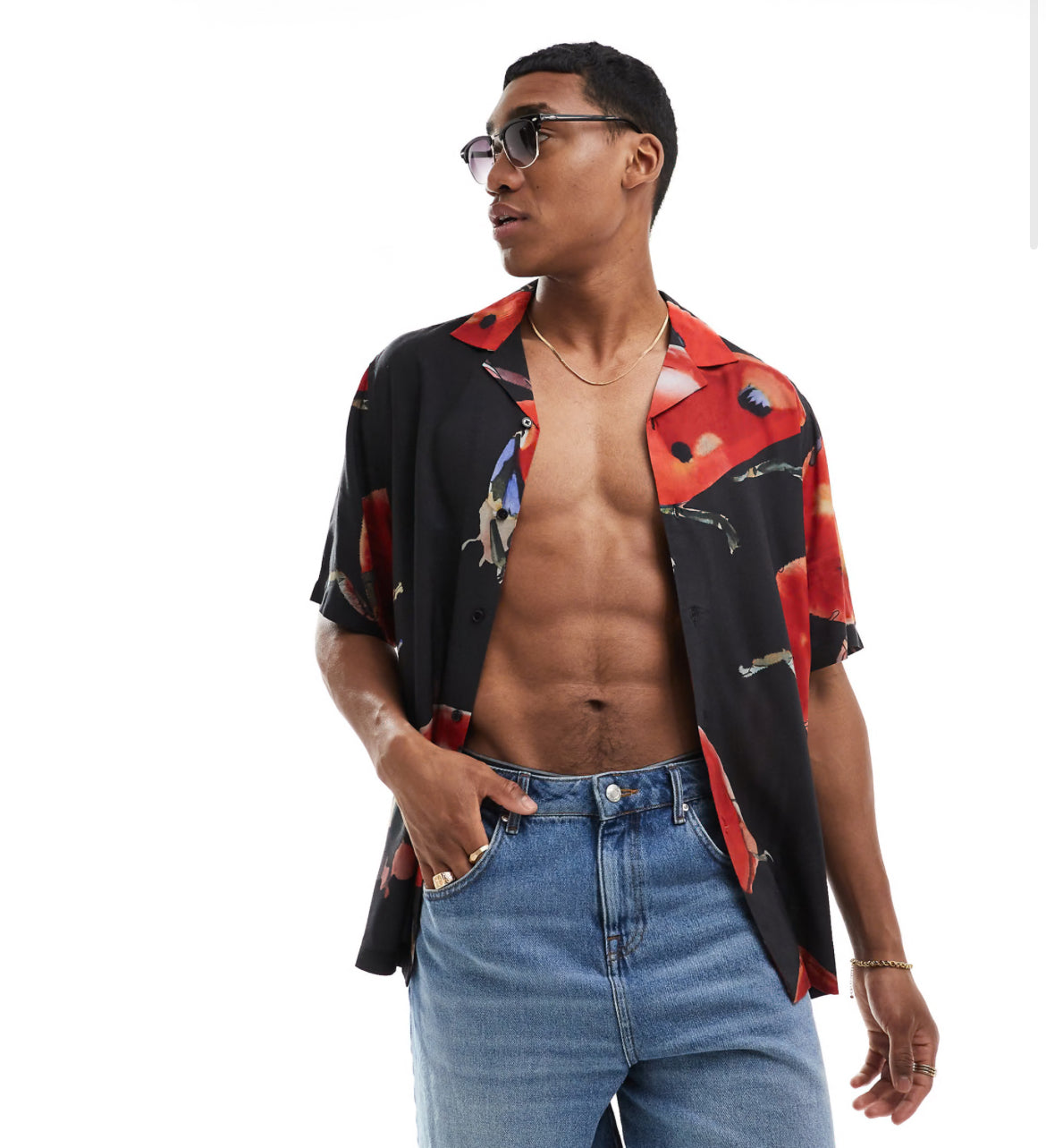 ASOS DESIGN relaxed revere shirt in ladybird print