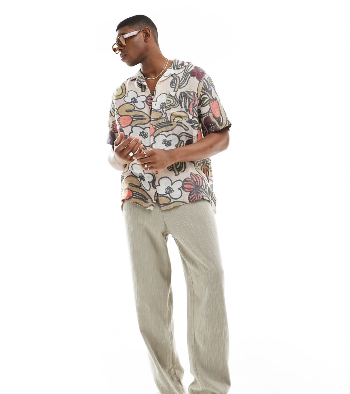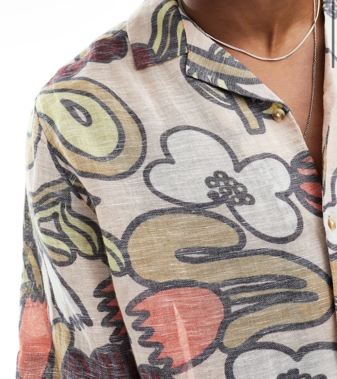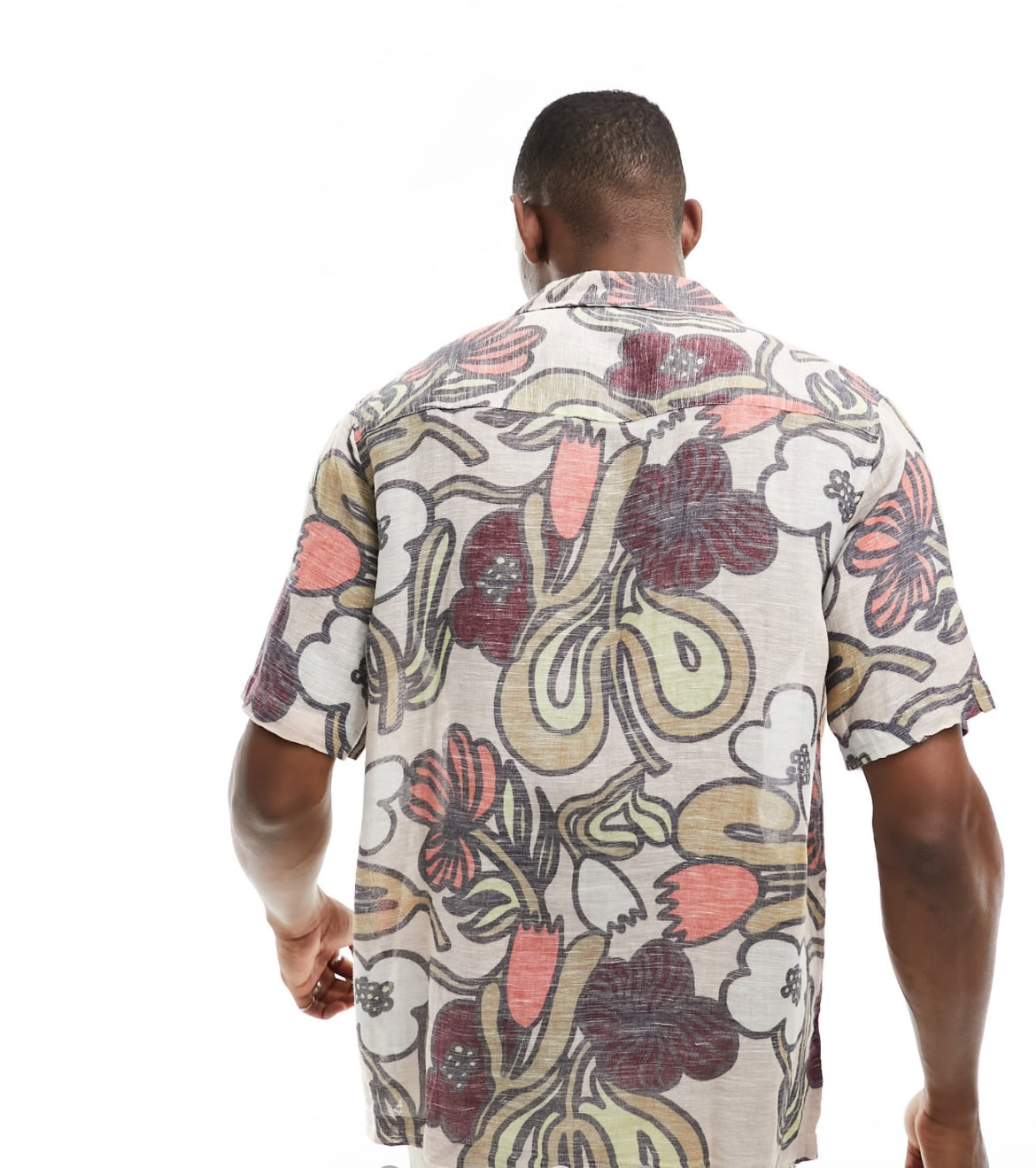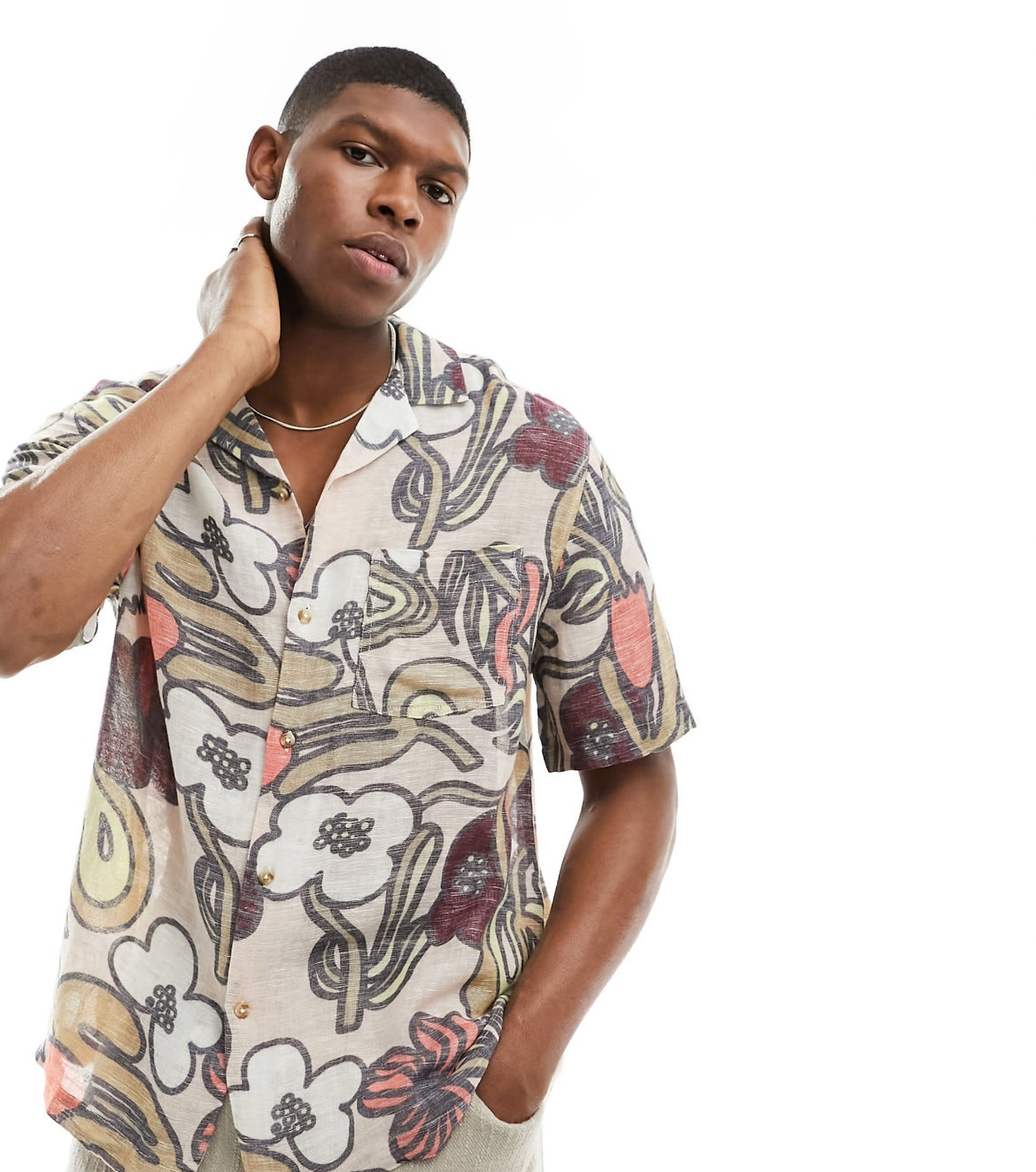 ASOS DESIGN relaxed revere shirt in reverse floral print