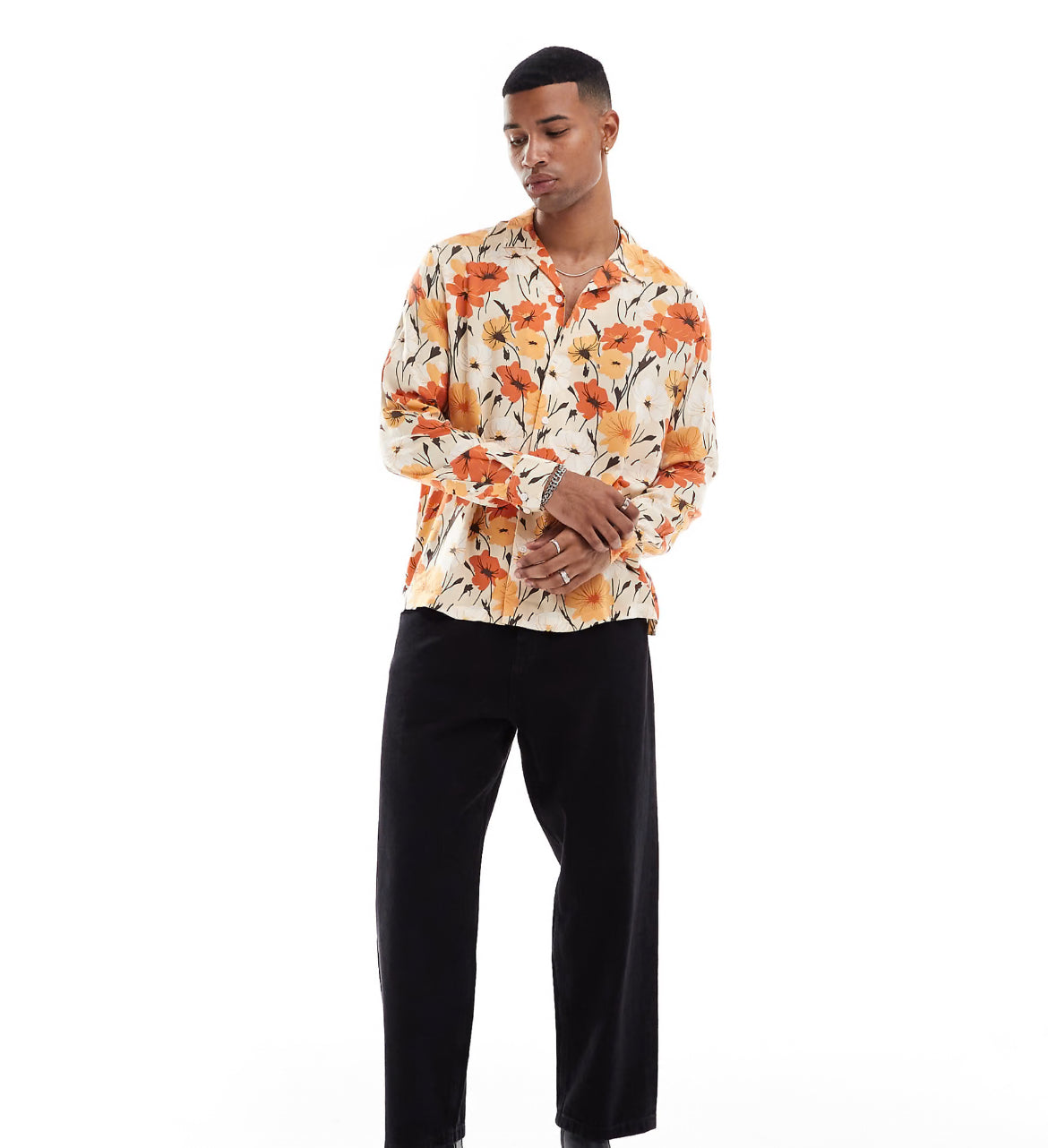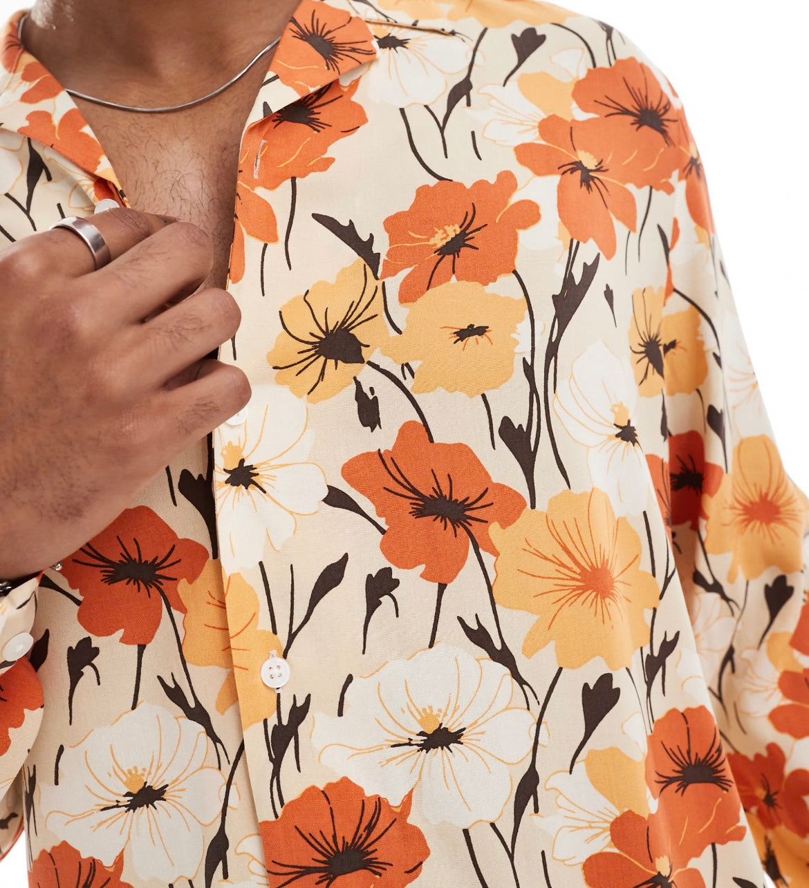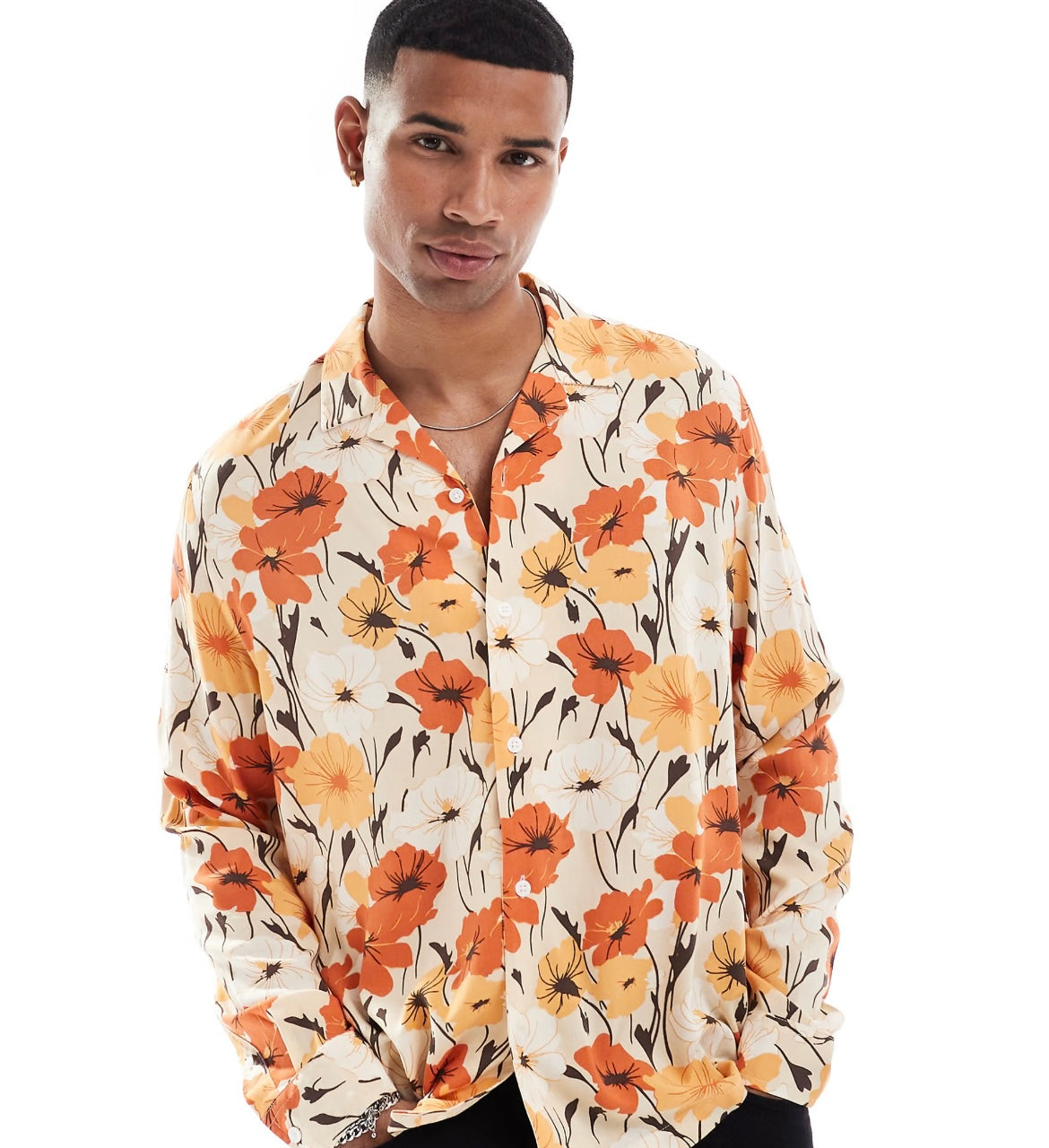 ASOS DESIGN relaxed revere shirt with retro floral print in orange