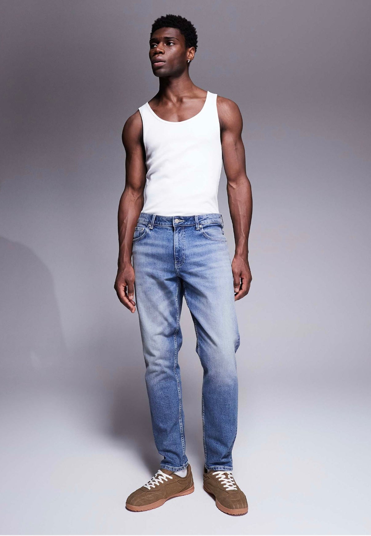 ASOS DESIGN tapered jeans in vintage light wash blue