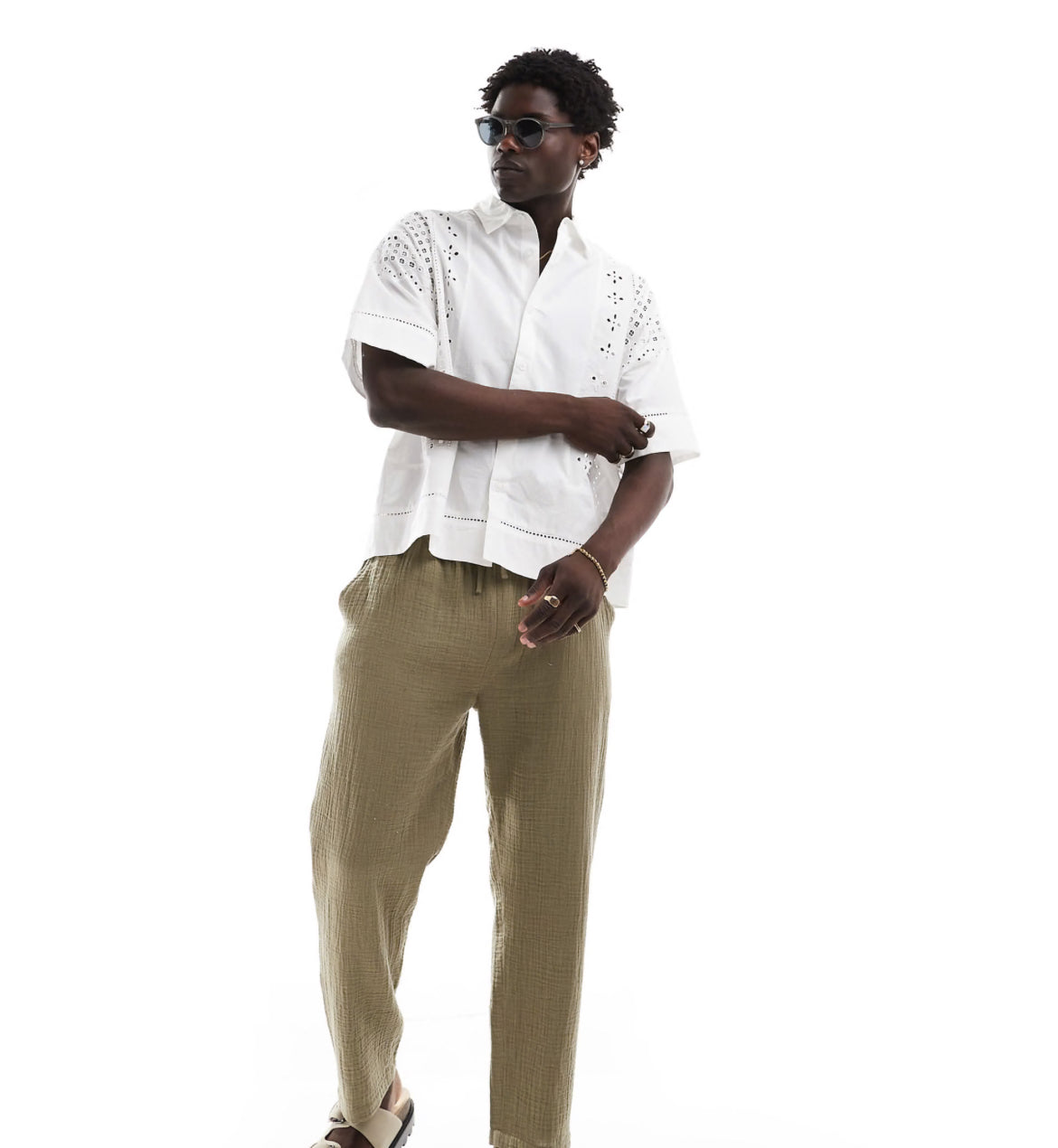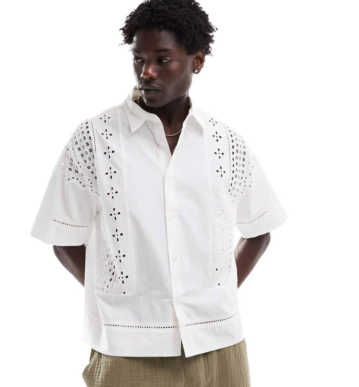 Bershka broidered detail shirt in white