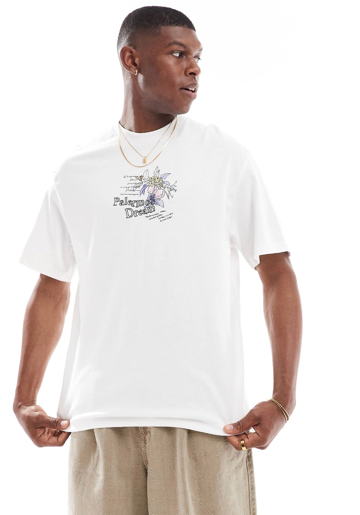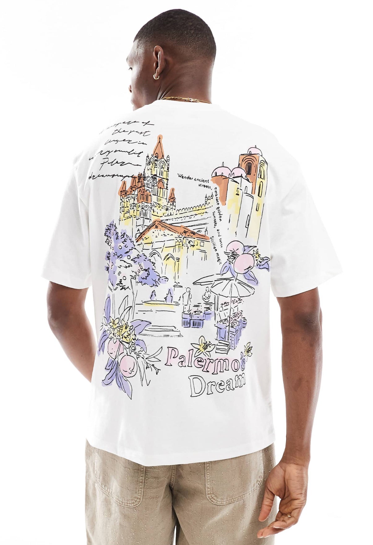 Bershka city printed t-shirt in white