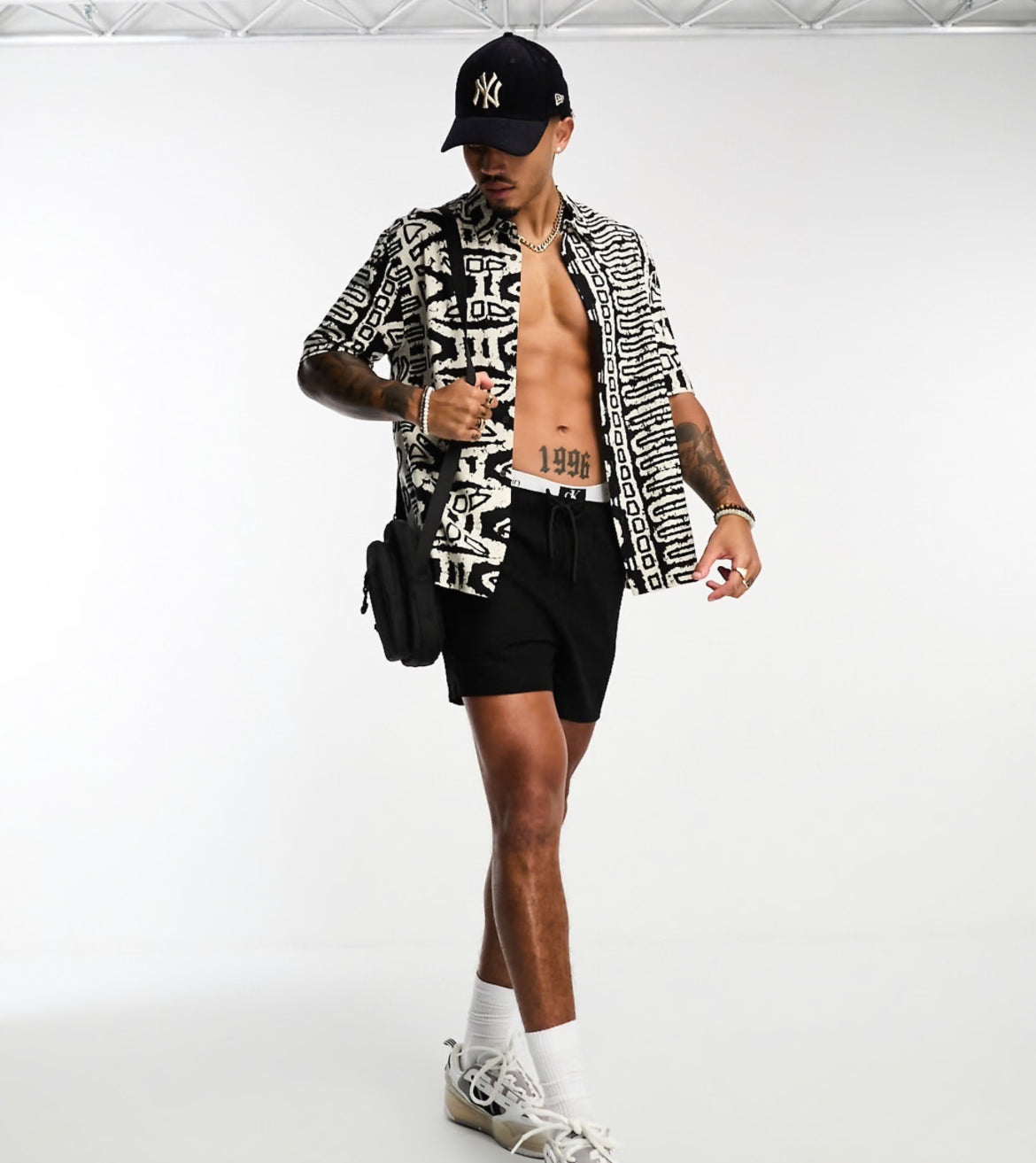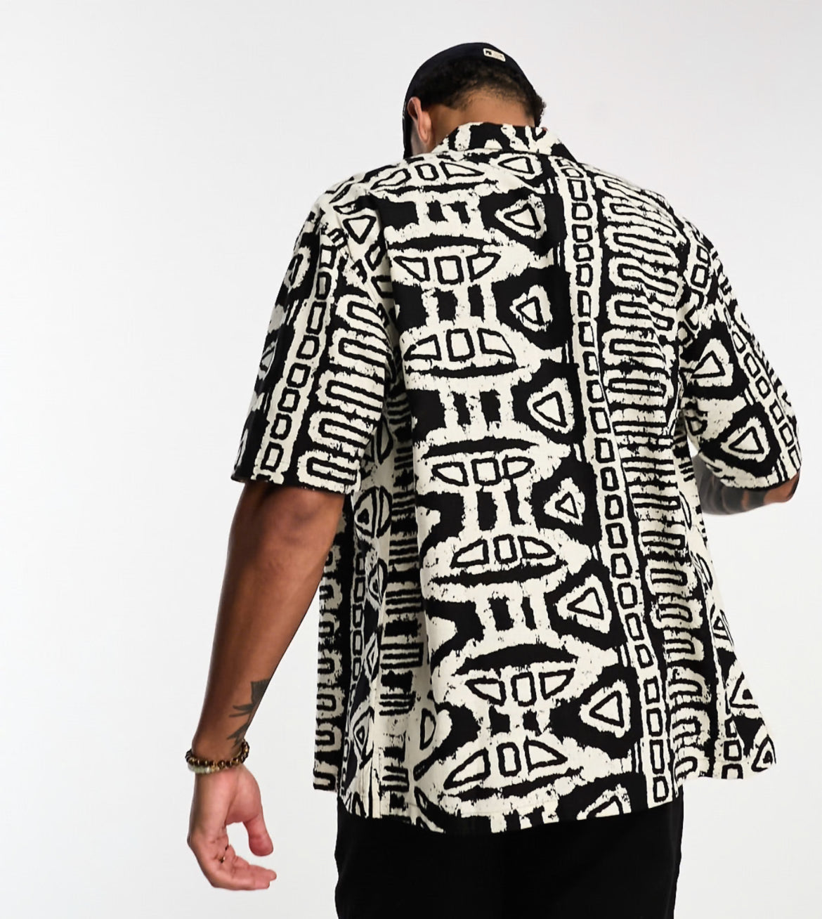 Bershka geometrical printed shirt in black and white