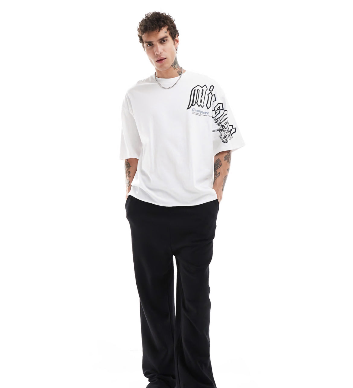 Bershka placement printed t-shirt in white