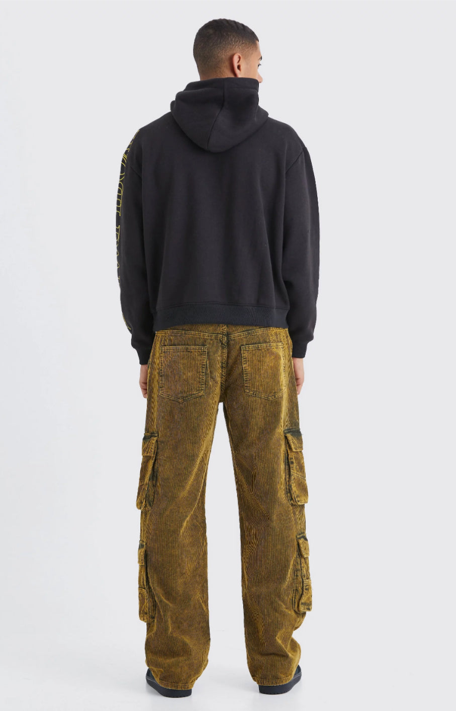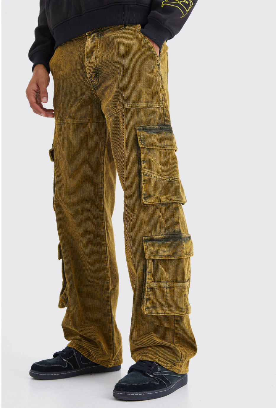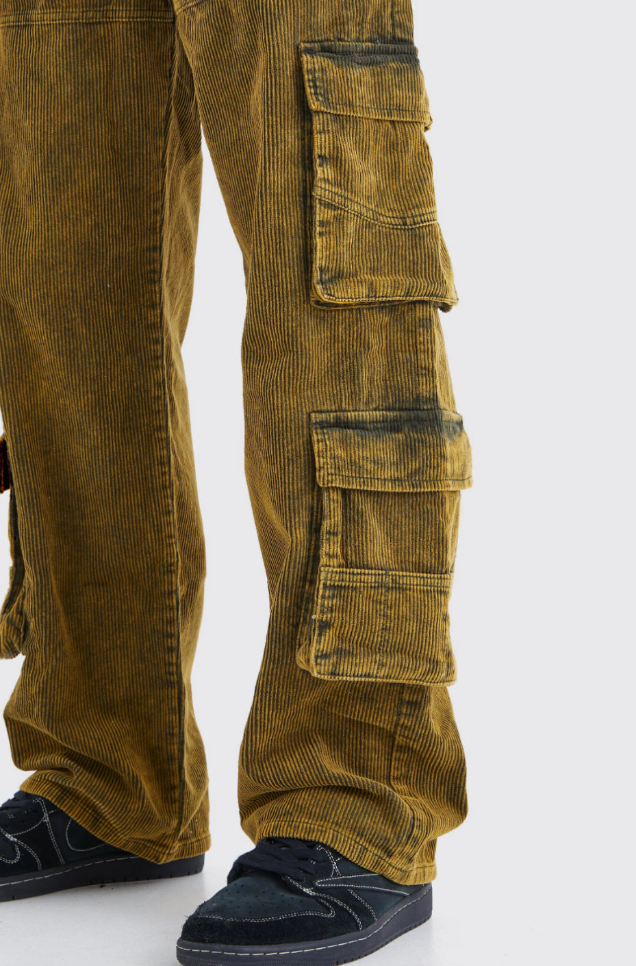 BoohooMan Baggy Multi Pocket Acid Wash Corduroy Cargo Trouser