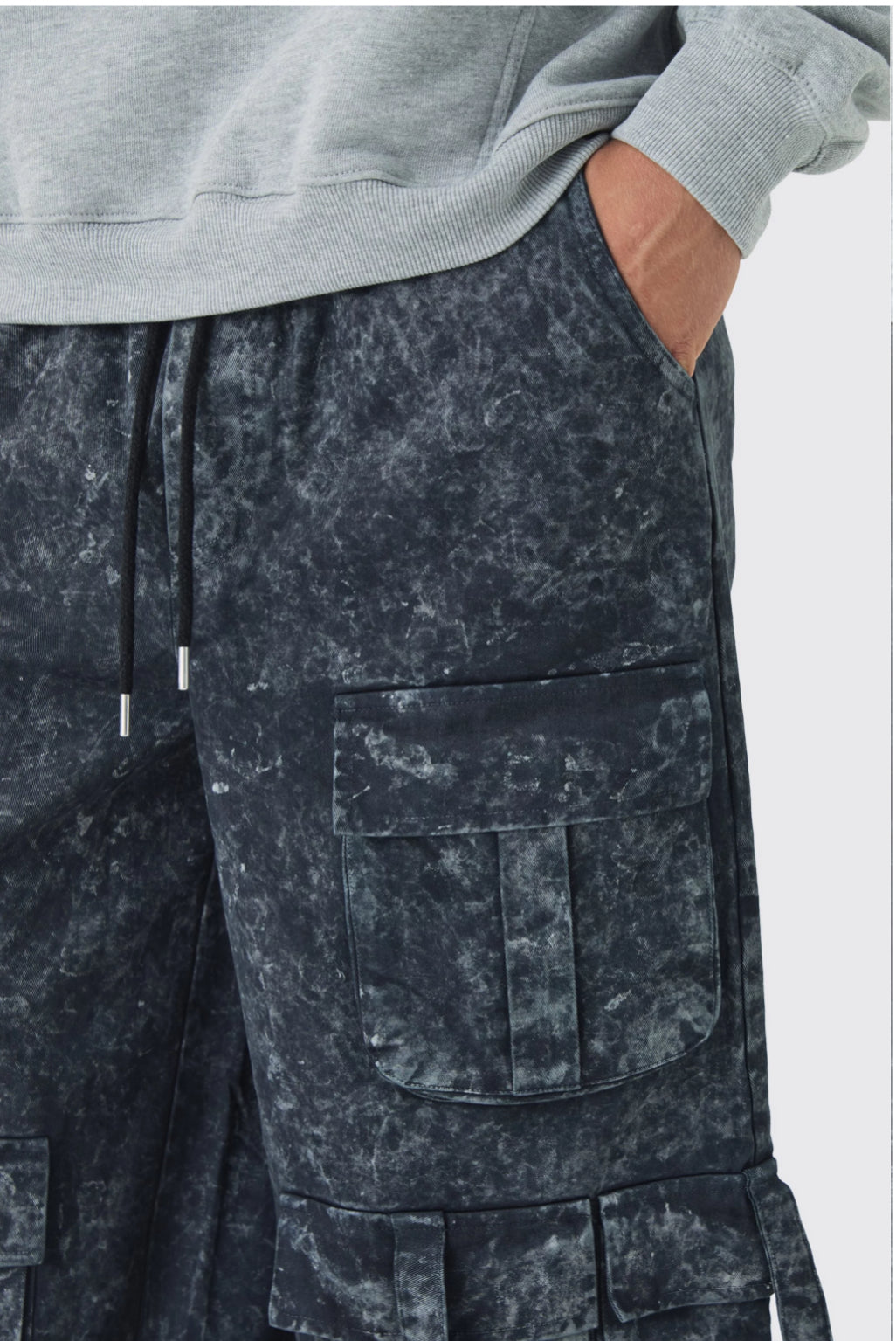 BoohooMan Elasticated Waist Extreme Baggy Heavyweight Washed Multi Cargo Trousers