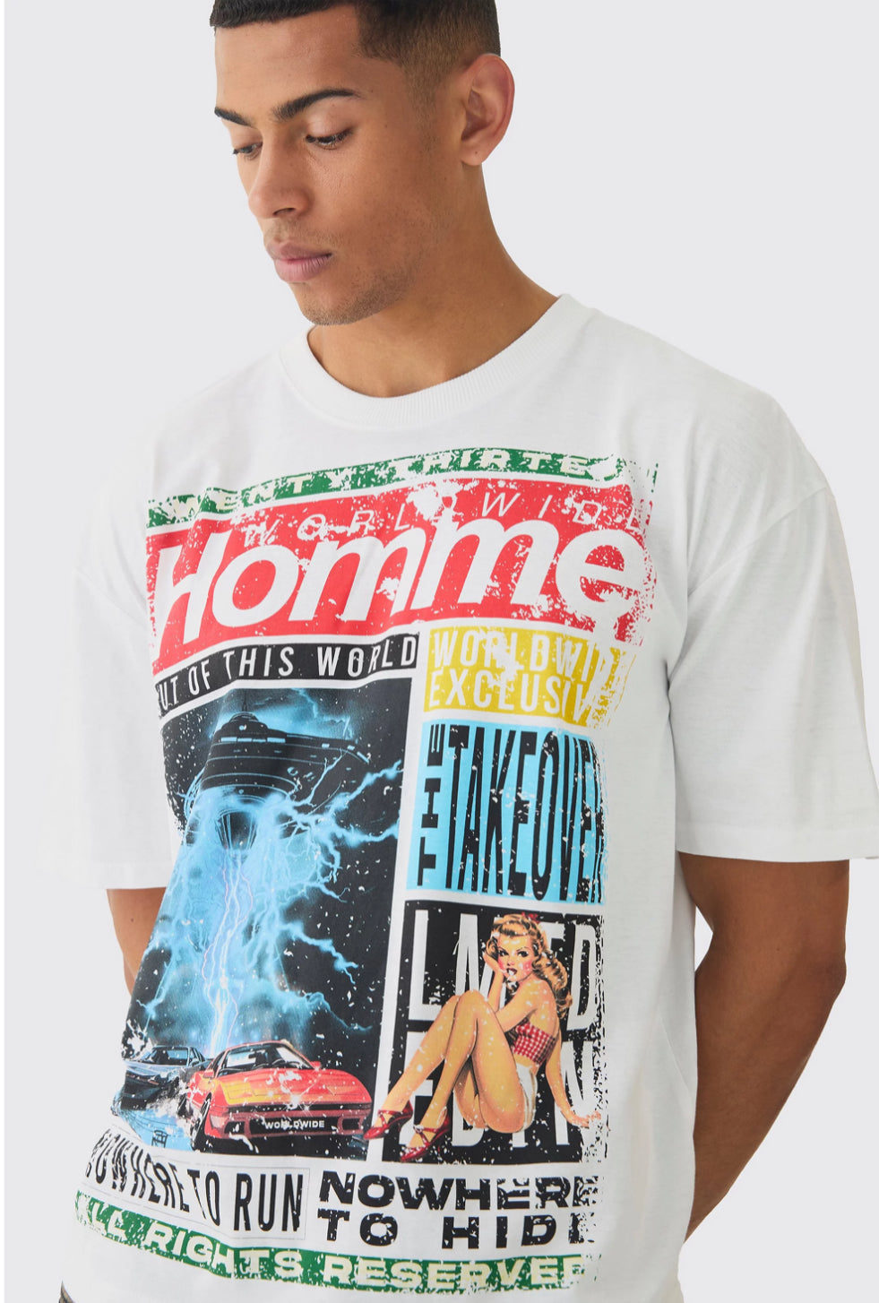 BoohooMan Oversized Boxy Homme Magazine Grap