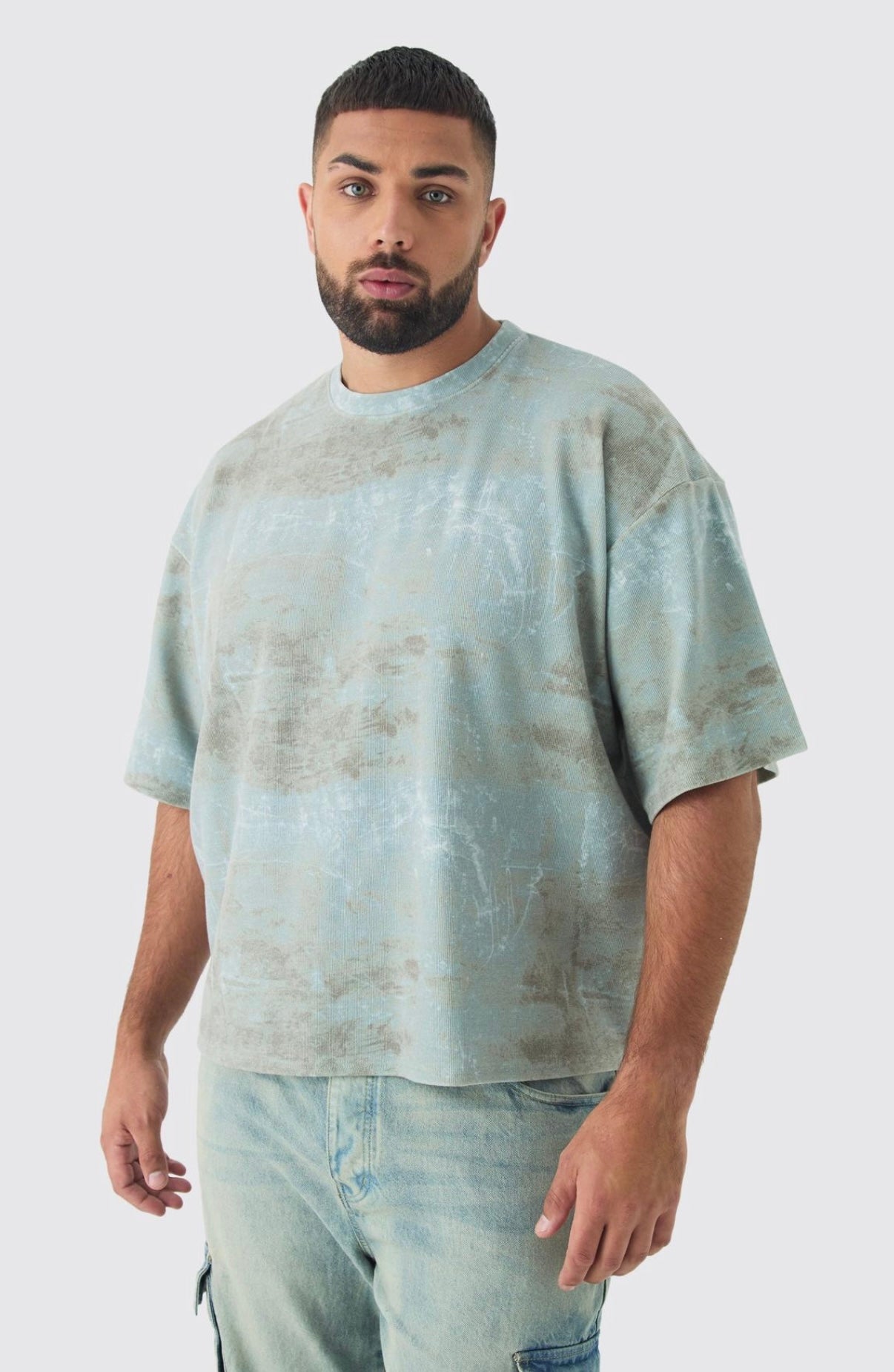 BoohooMAN PLUS ACID WASH COMPACT RIB BOXY OVERSIZED T-SHIRT