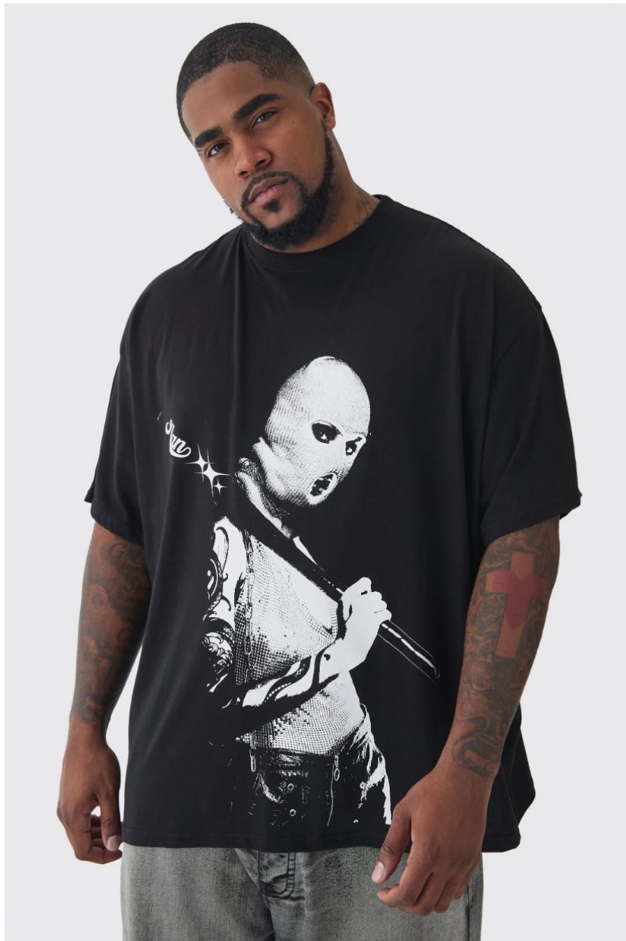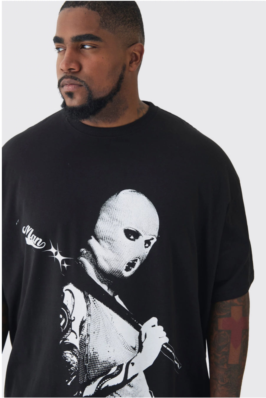 BoohooMan Plus Mono Man Balaclava T-shirt In Black