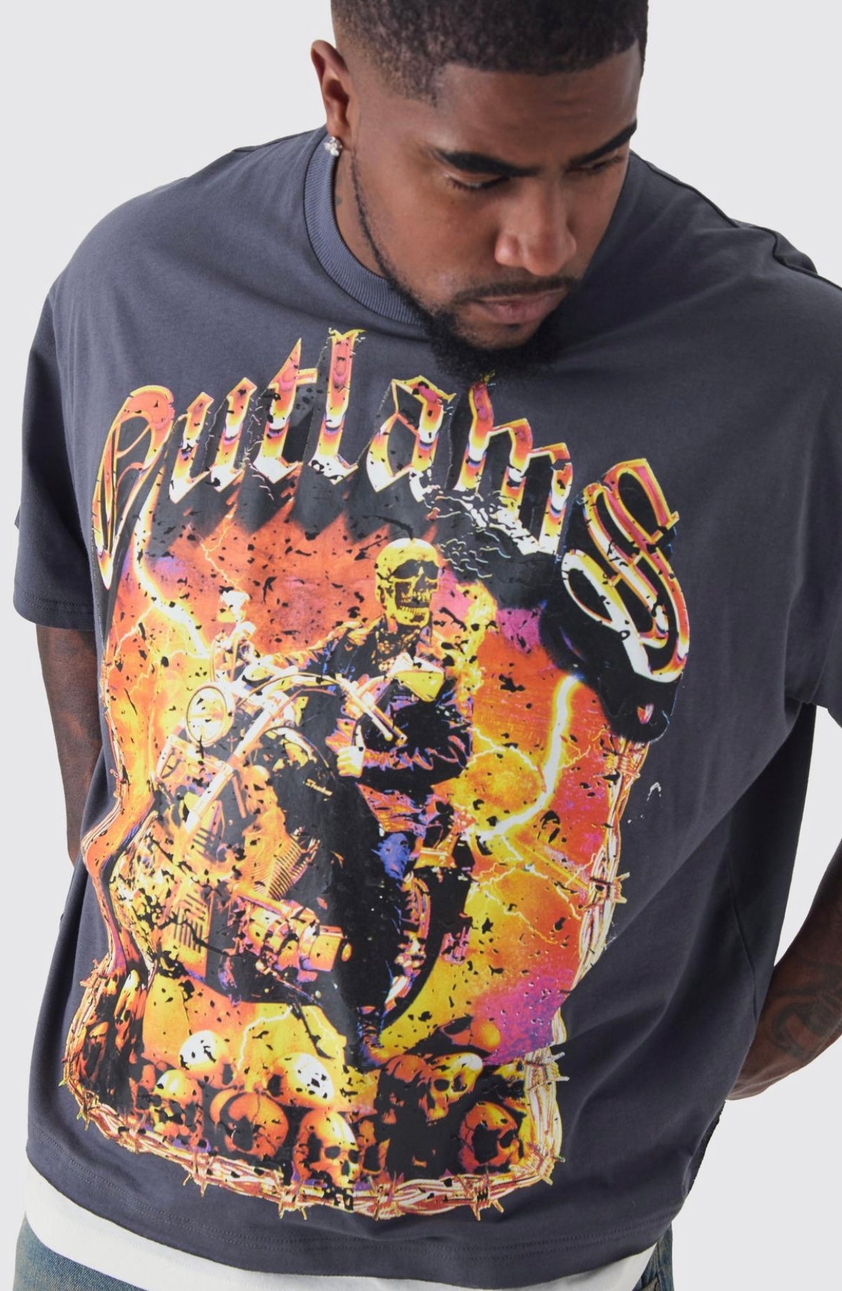 BoohooMAN Plus Oversized Boxy Outlaws Faux Layer T-Shirt