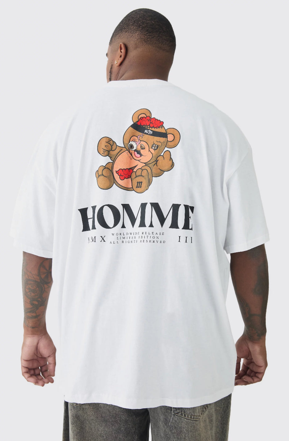 BoohooMan Plus Oversized Evil Teddy Homme Print T-Shirt