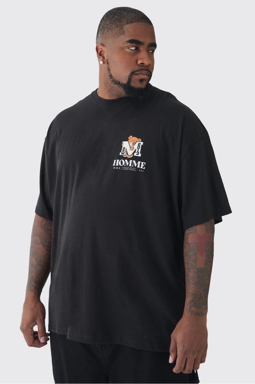 BoohooMan Plus Oversized Evil Teddy Homme Print T-Shirt