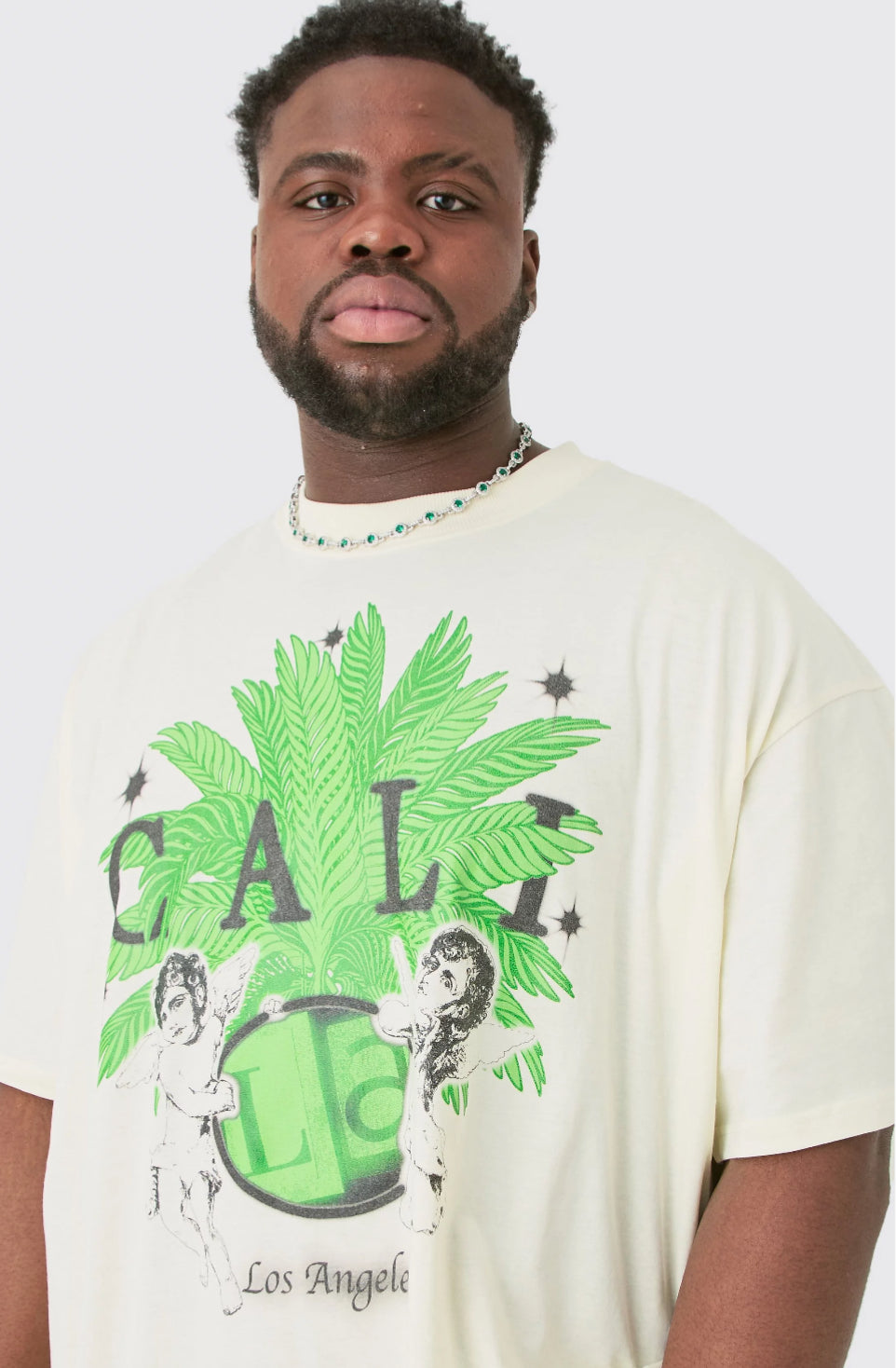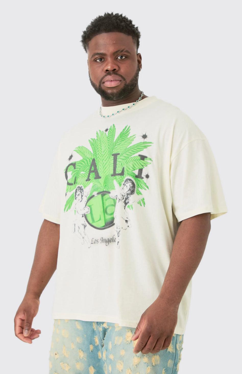 BoohooMan Plus Oversized Extended Neck Cherub Print T-shirt