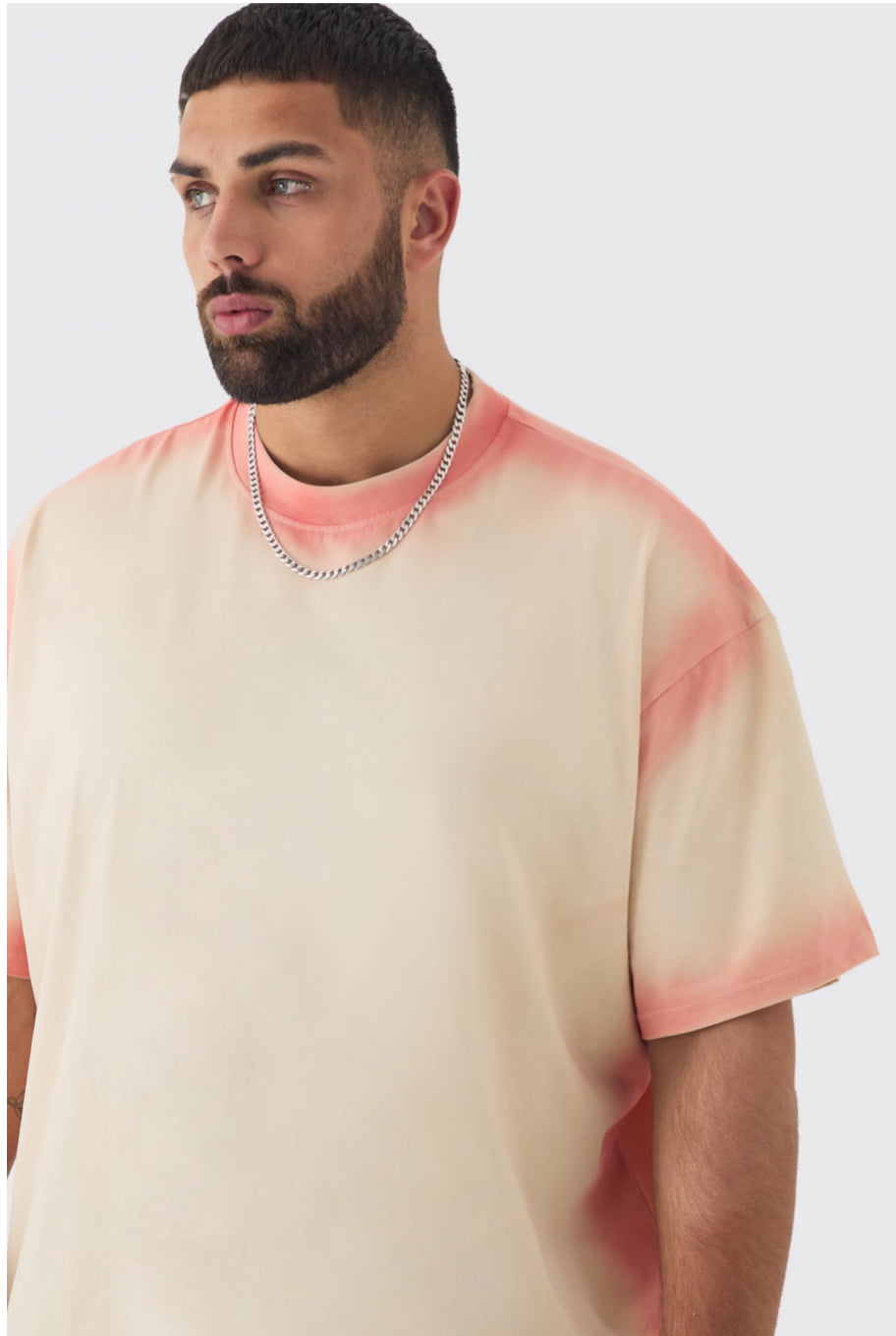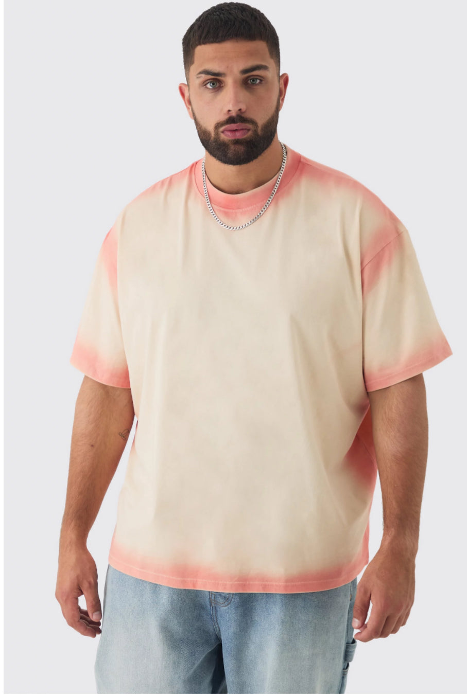 BoohooMan Plus Oversized Extended Neck Spray Wash T-shirt