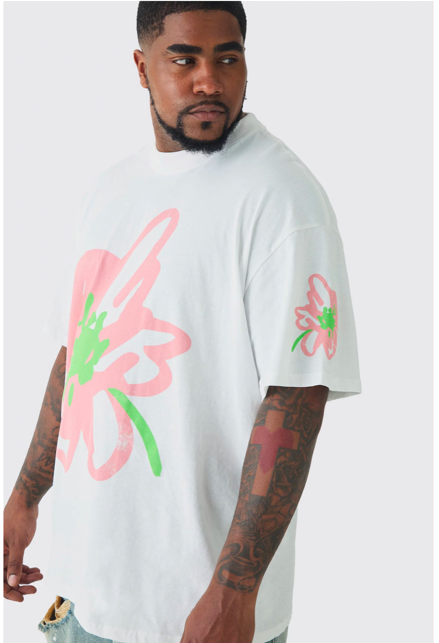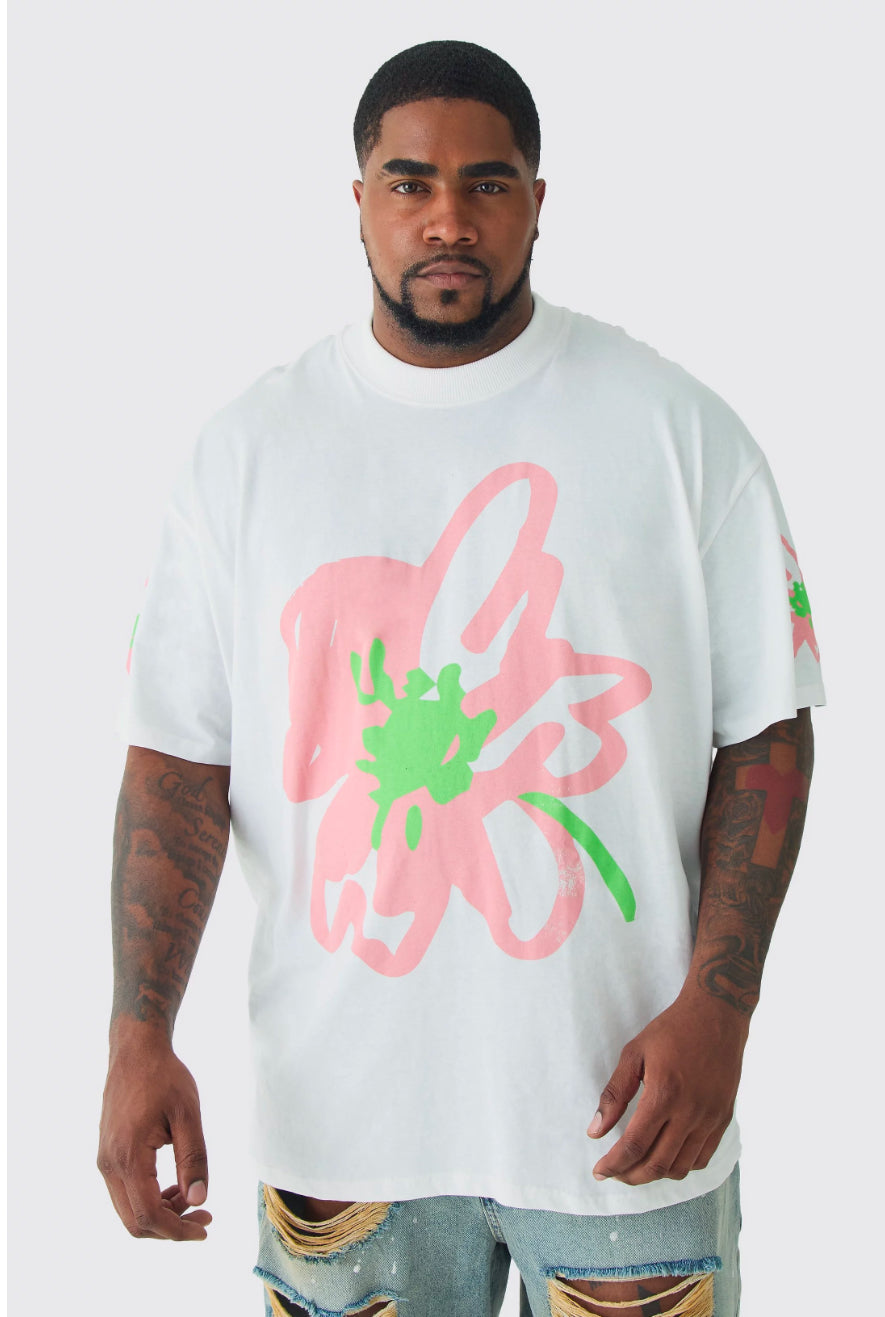 BoohooMan Plus Oversized Floral Doodle Print T-shirt