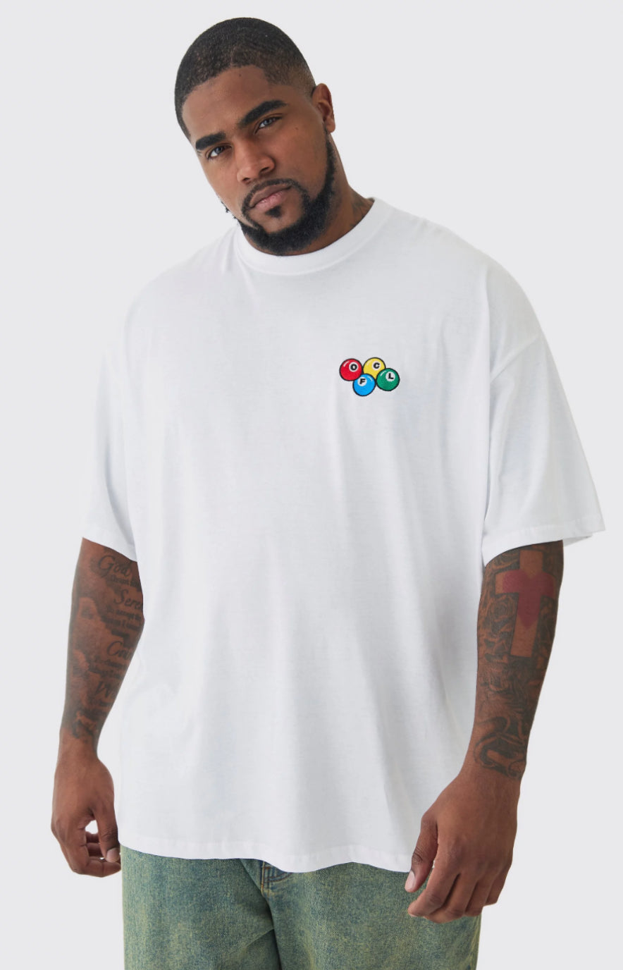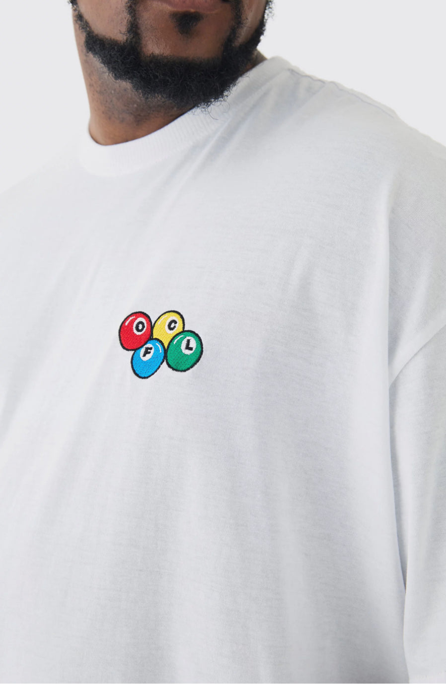 BoohooMan Plus Oversized Plus OFCL 8 Ball Embroidered T-shirt In White