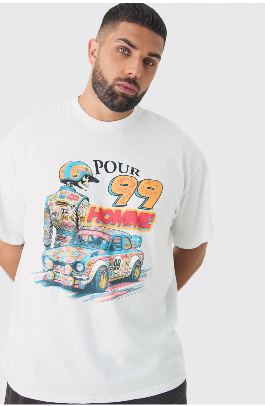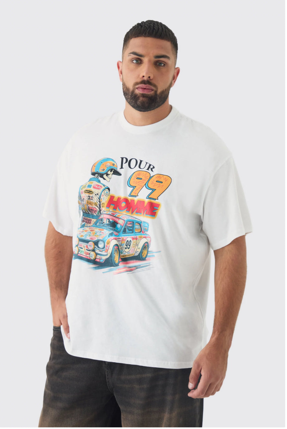 BoohooMan Plus Oversized Pour Homme Moto Print T-Shirt
