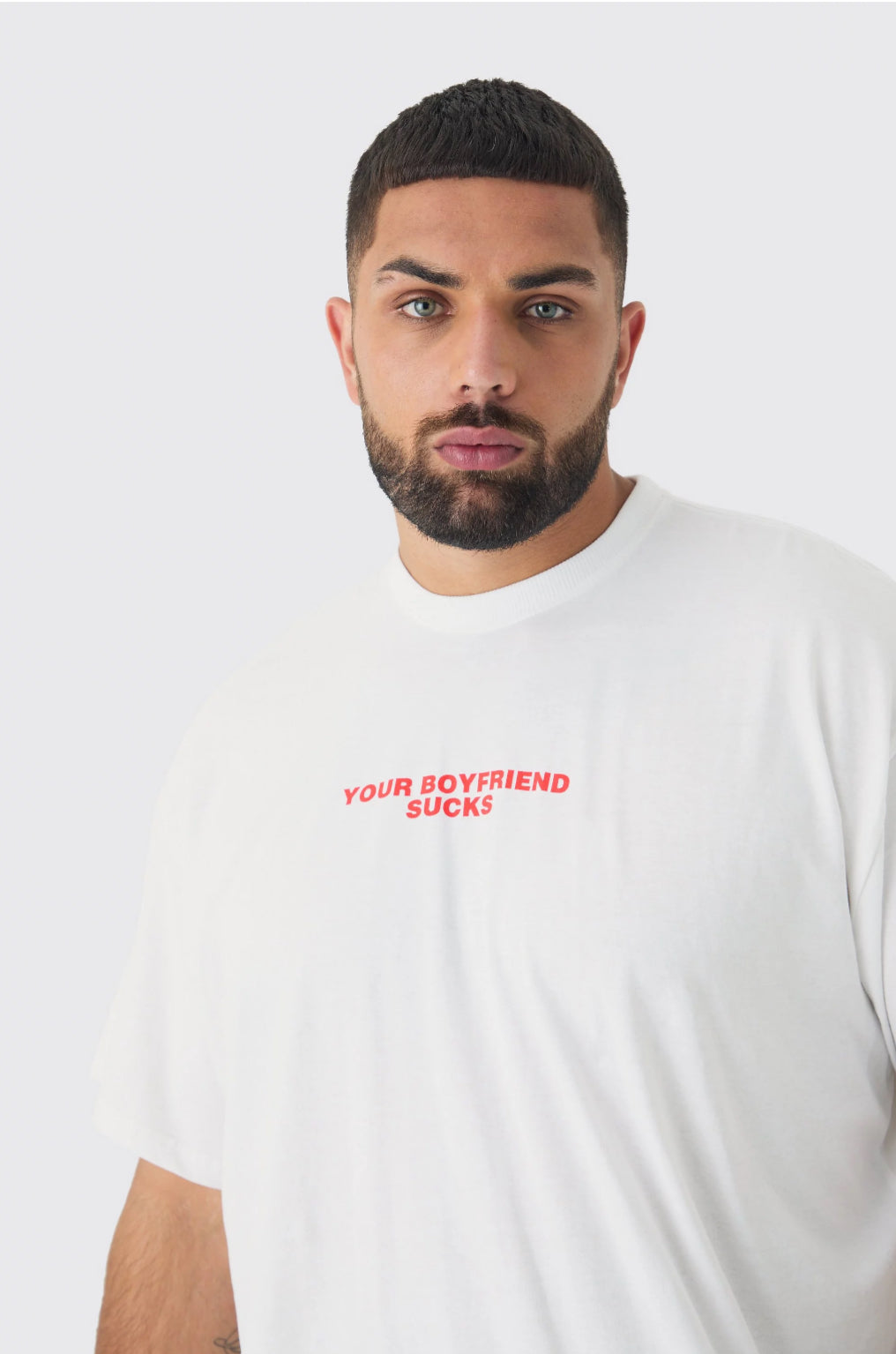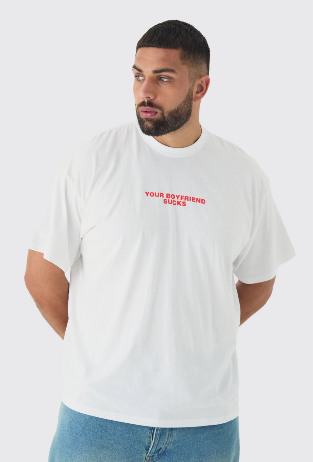 BoohooMan Plus Your Boyfriend Sucks Oversized T-shirt in White