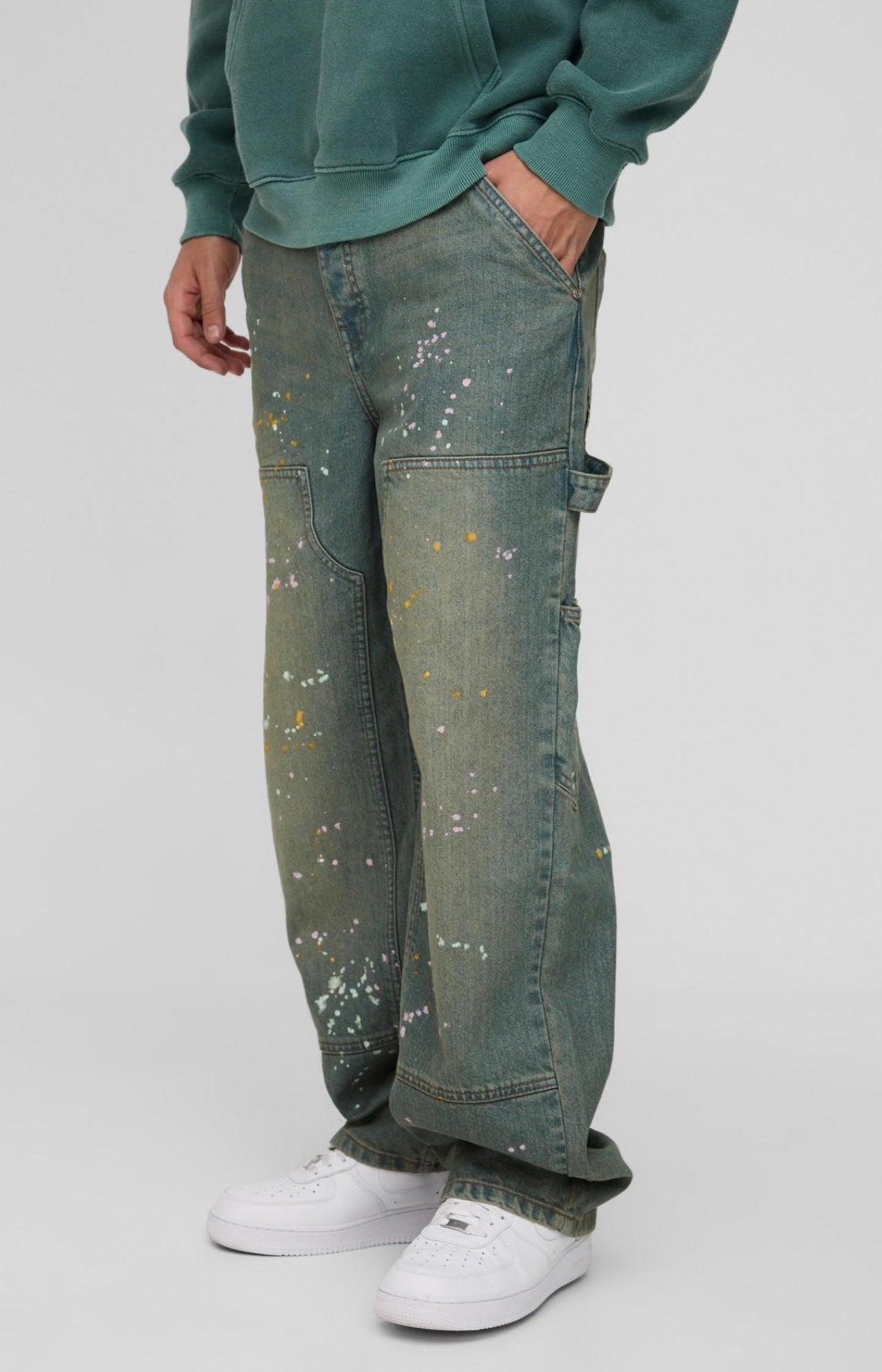 BoohooMAN Relaxed Rigid Paint Splatter Carpenter Denim Jeans