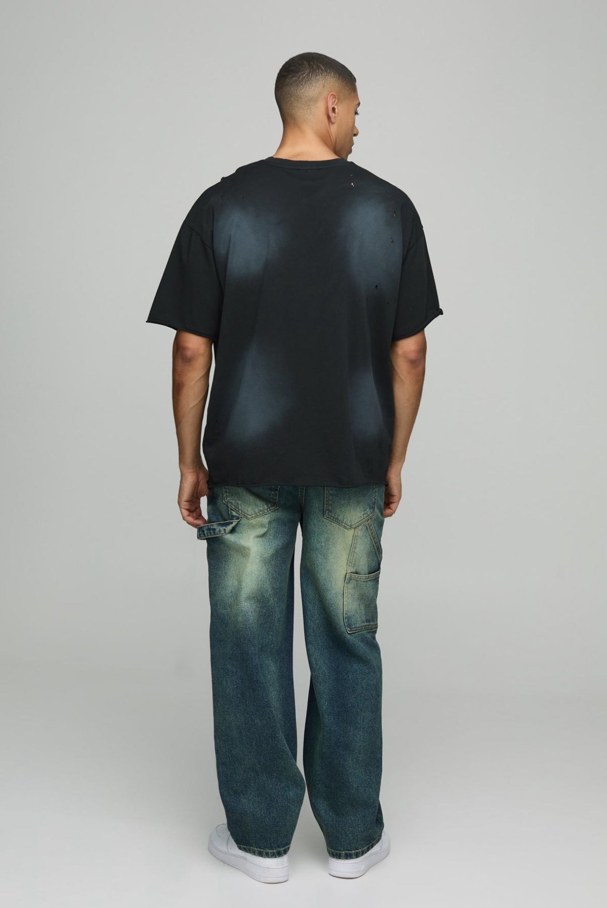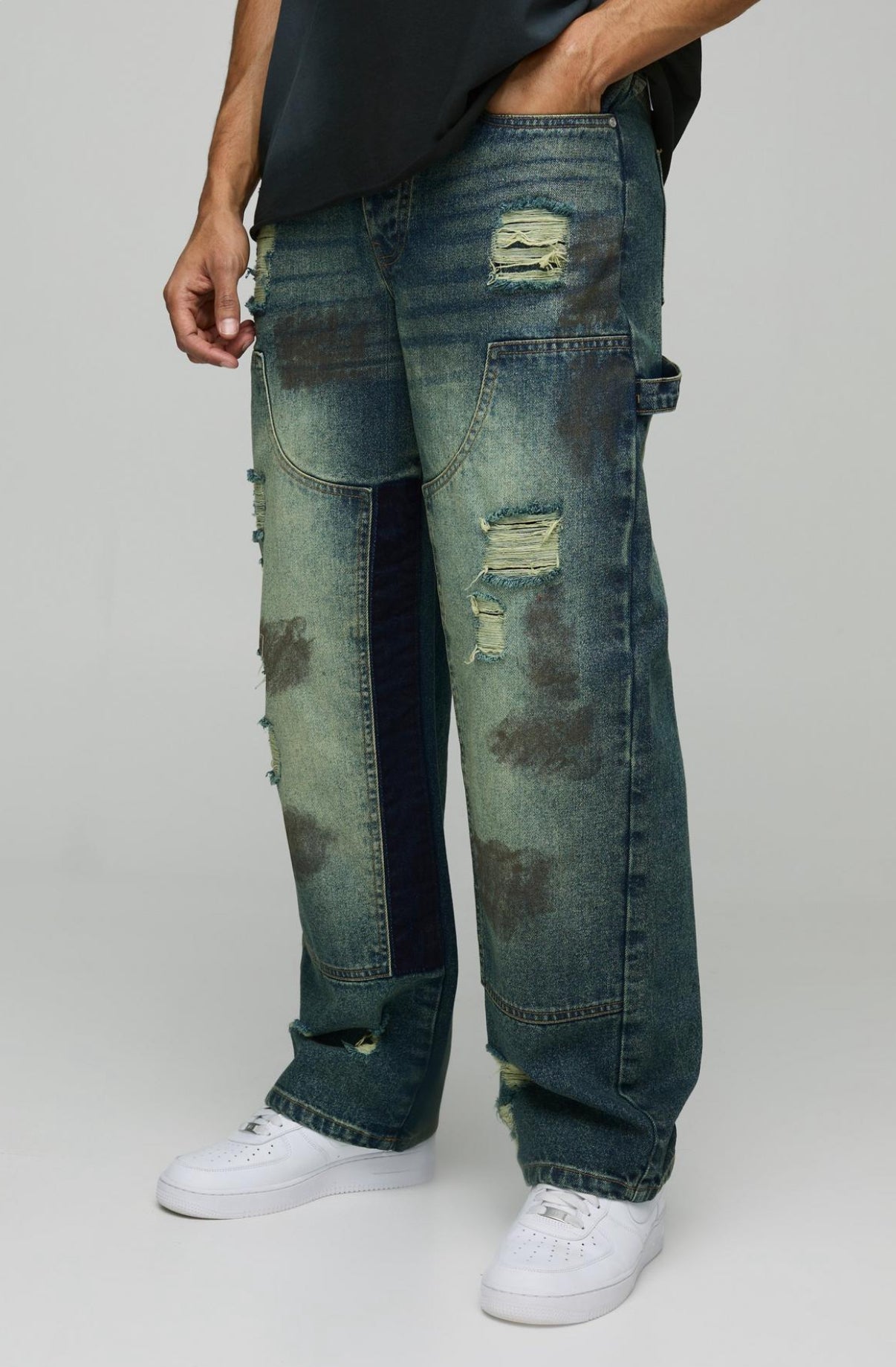 BoohooMAN Relaxed Rigid Ripped Dirty Wash Carpenter Denim Jeans