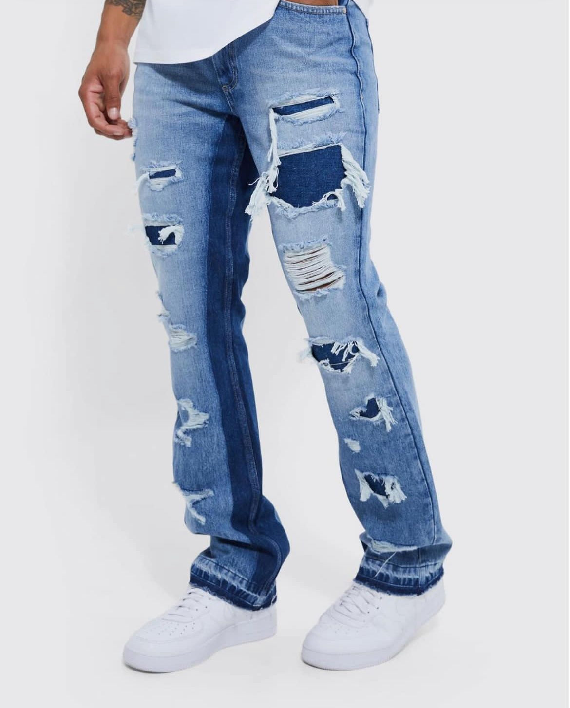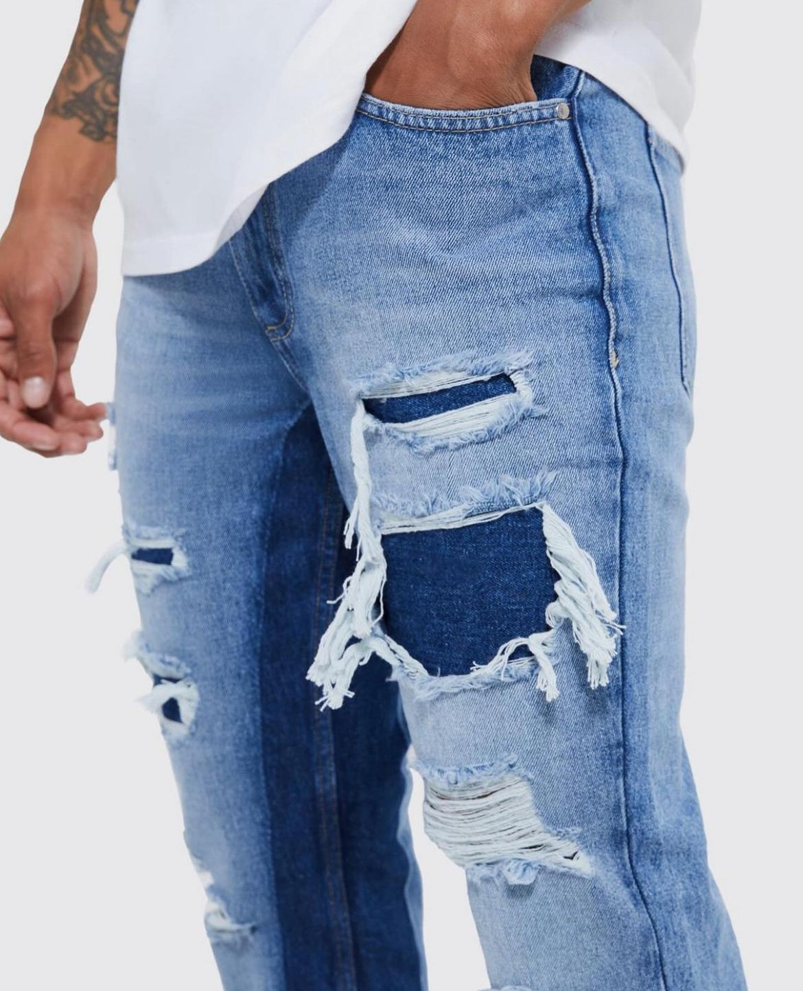 BoohooMan Slim Rigid Flare Panelled Ripped Jeans