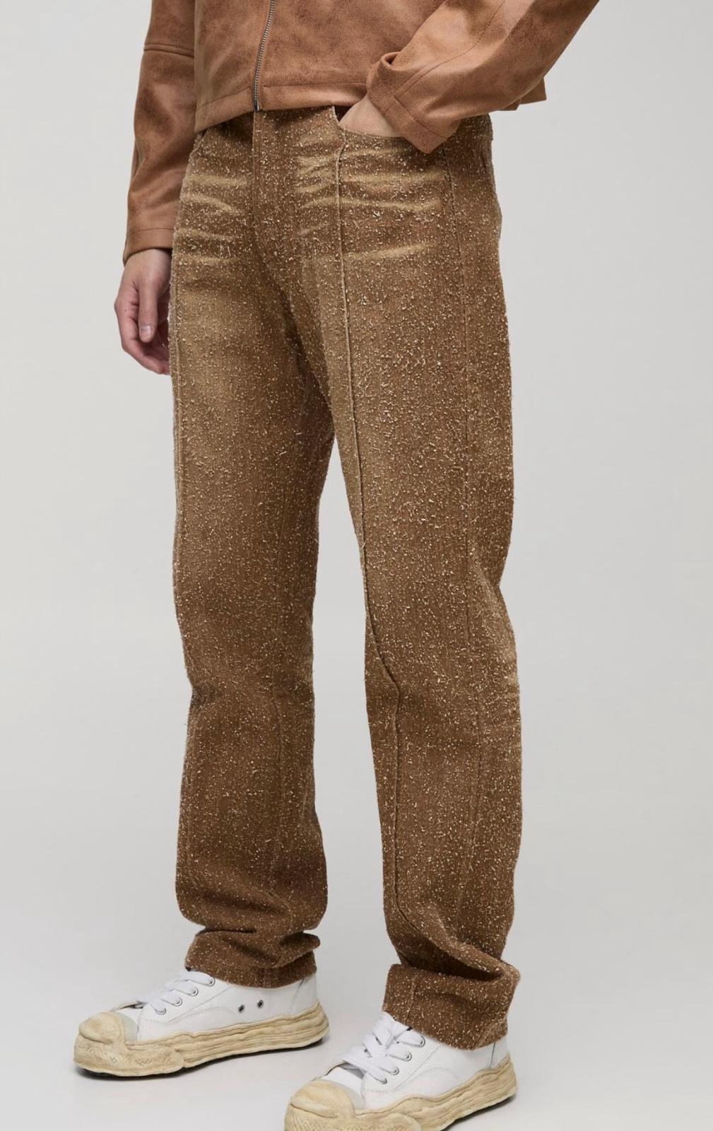 Boohooman Straight Leg Textured Dirty Wash Jeans With Pintuck