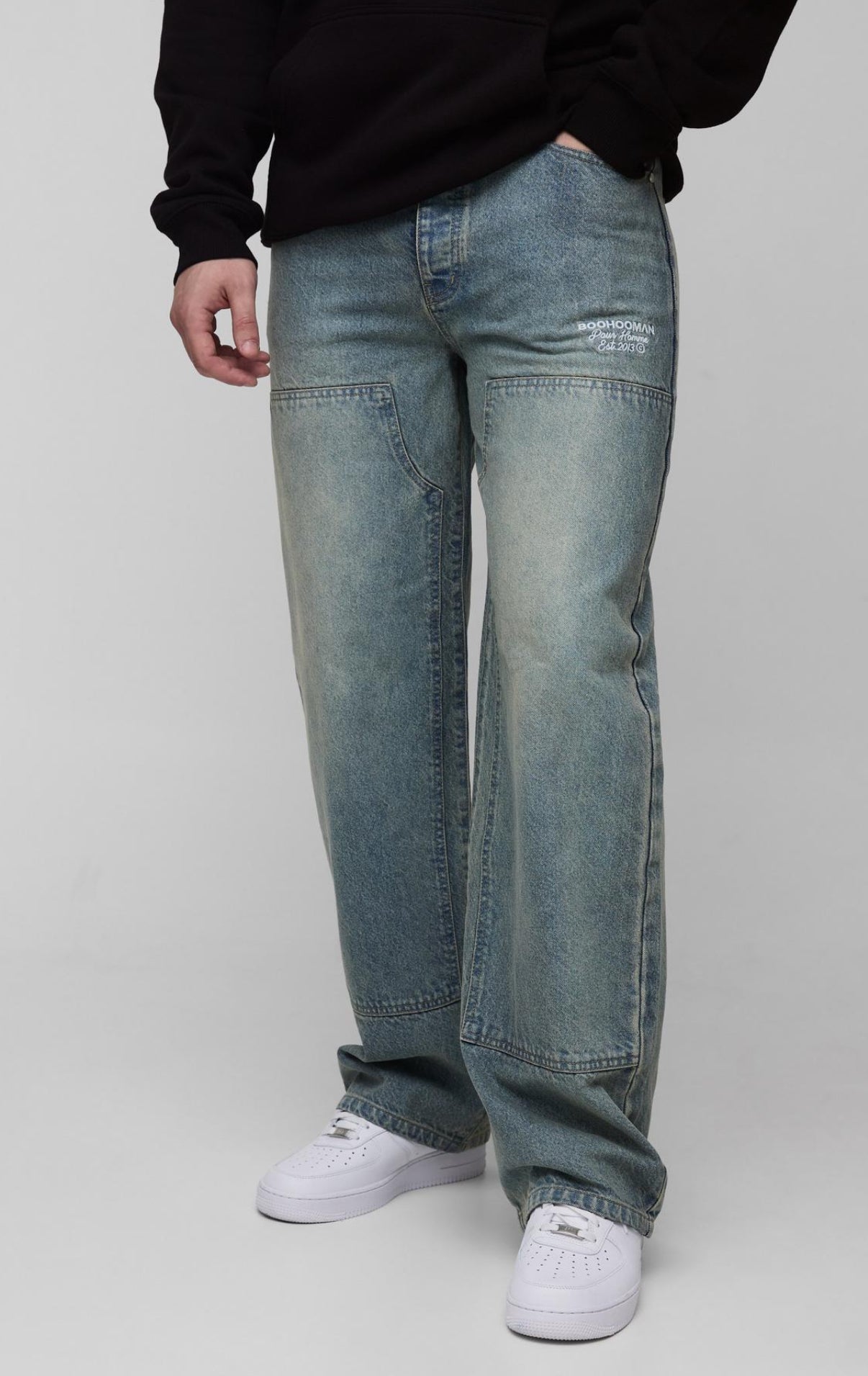 BoohooMAN Tall Relaxed Fit Embroidered Carpenter Jeans
