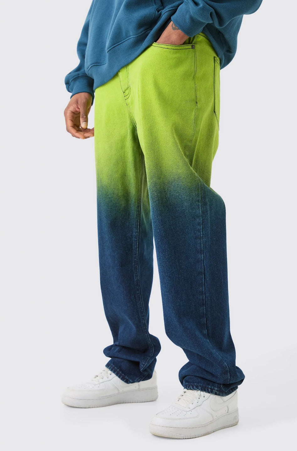 BOOHOOMAN TALL RELAXED RIGID OMBRE JEANS