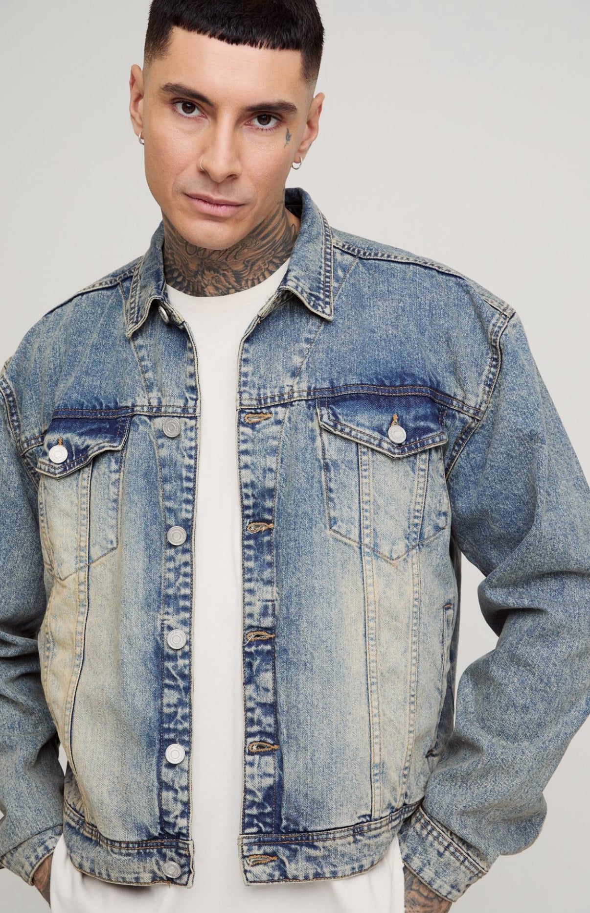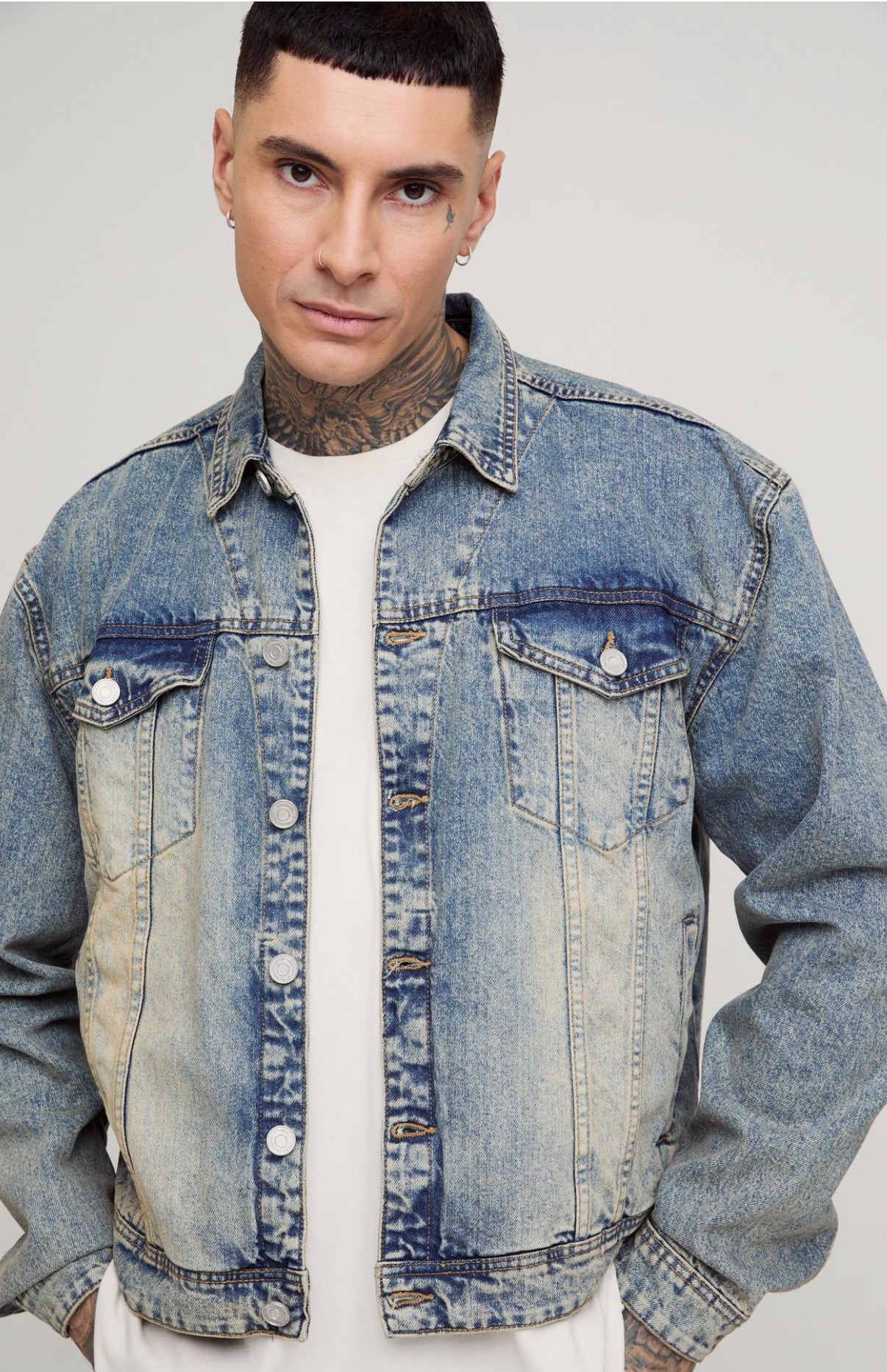 BoohooMAN Tall Stonewash Boxy Oversized Denim Jacket