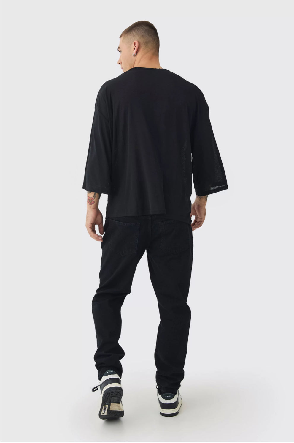 BOOHOOMAN TAPERED RIGID JEAN IN TRUE BLACK