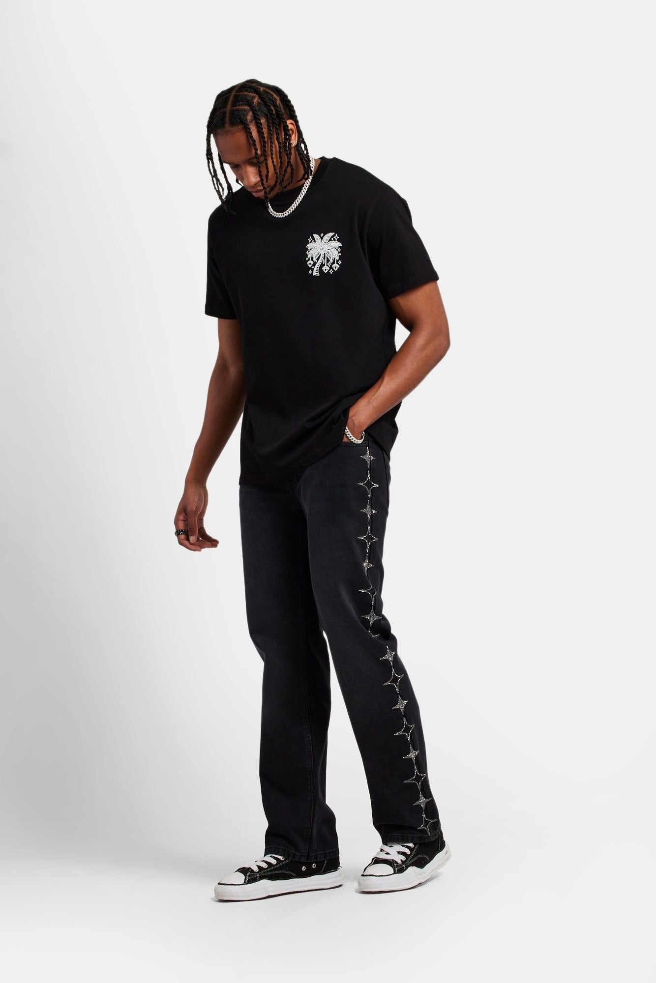 Cernucci Relaxed Rhinestone Star Jeans - Washed Black