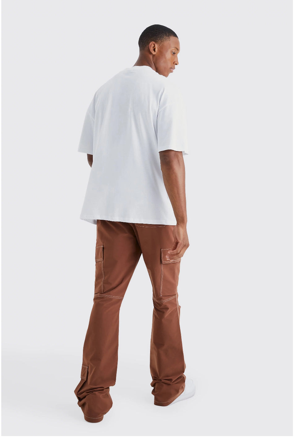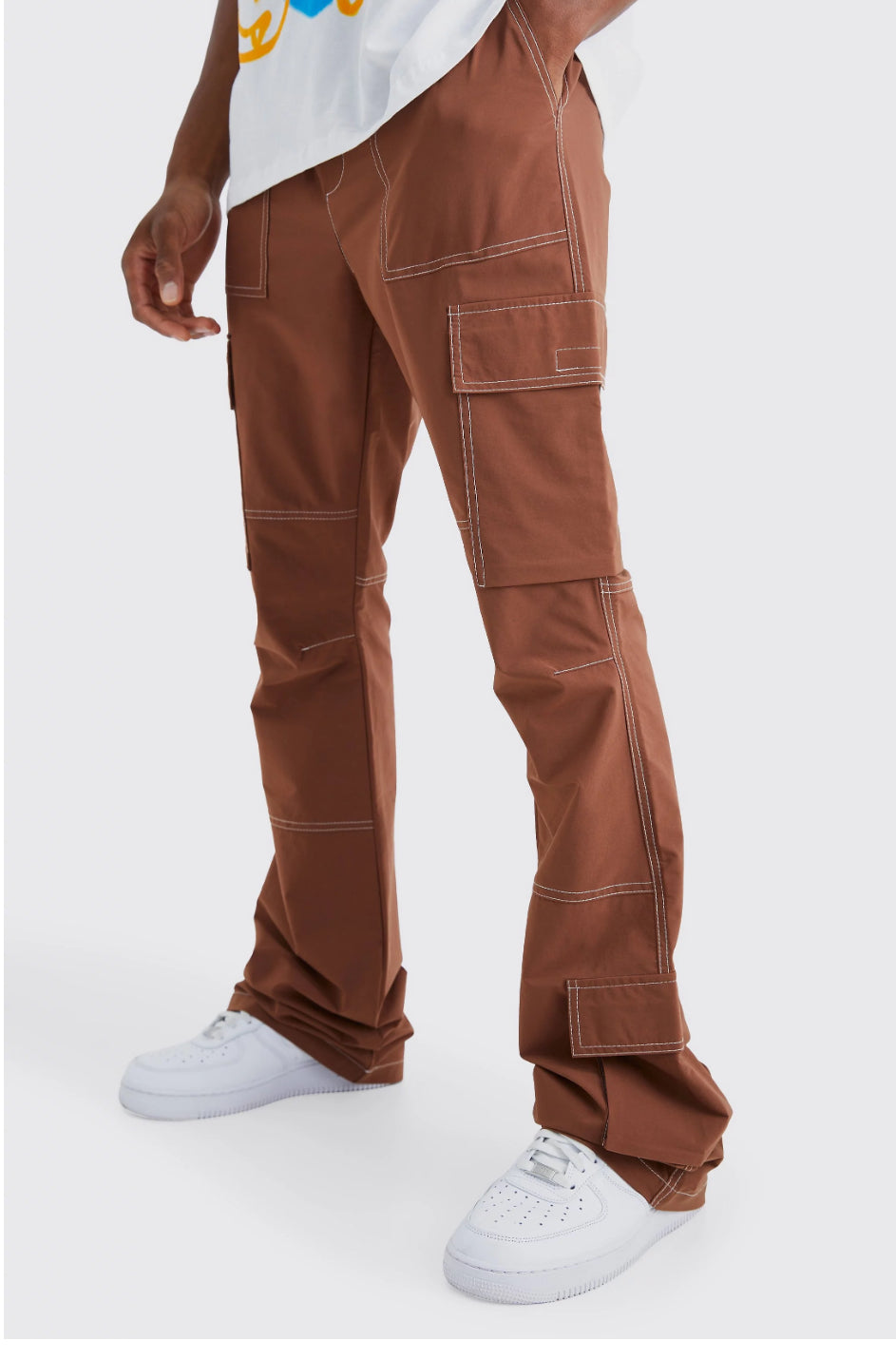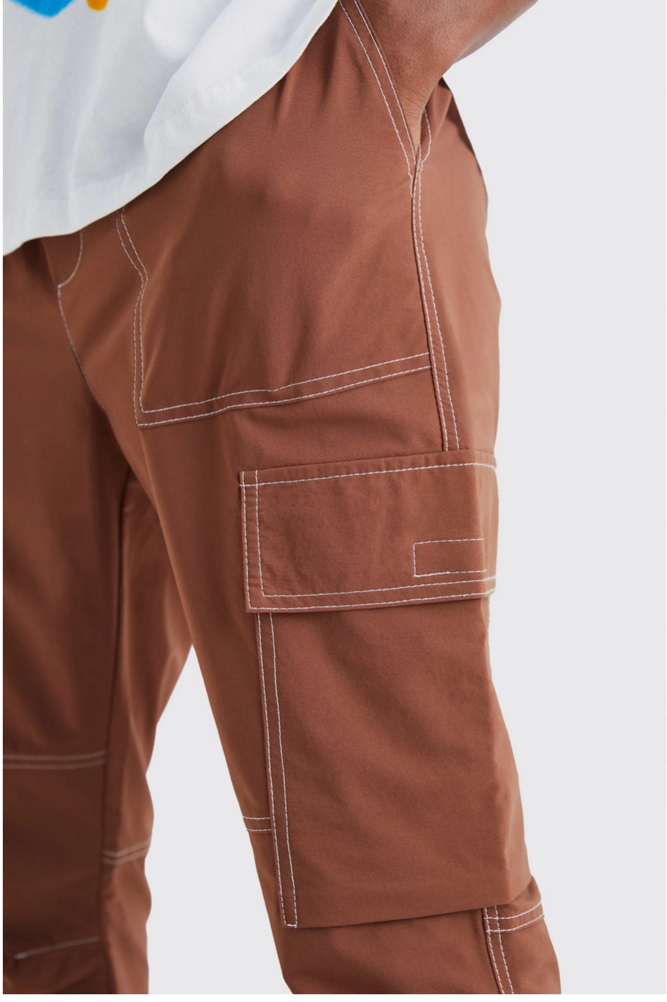 Elasticated Waist Slim Flare Contrast Stitch Cargo Trouser