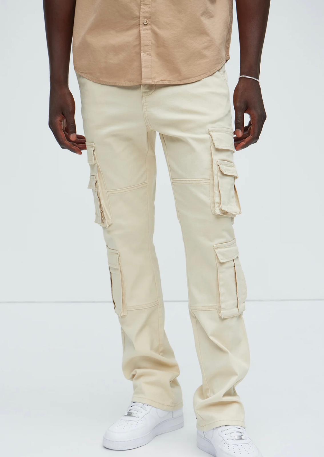 Fashion nova Landon Stacked Skinny Flare Cargo Pants - Cream
