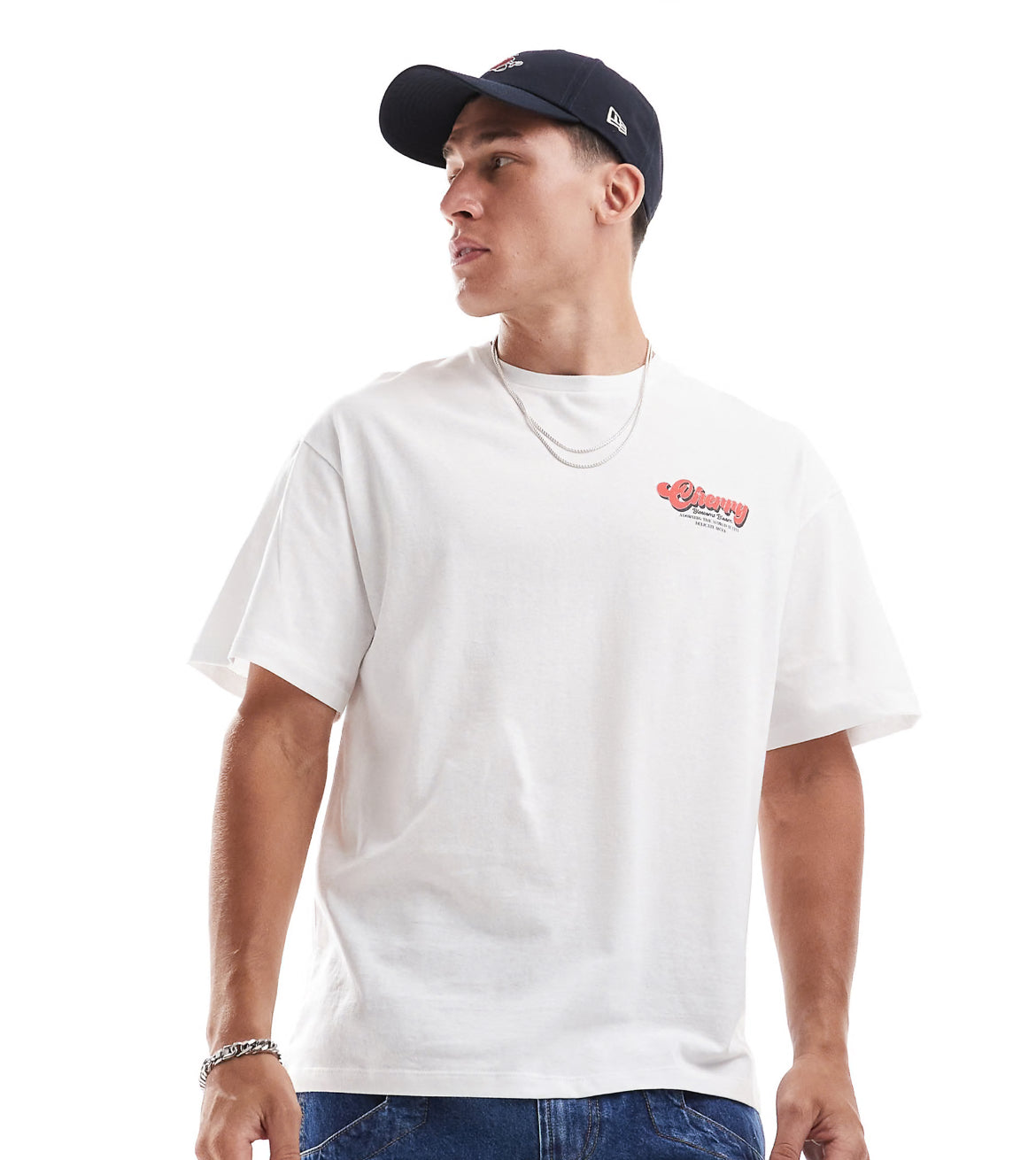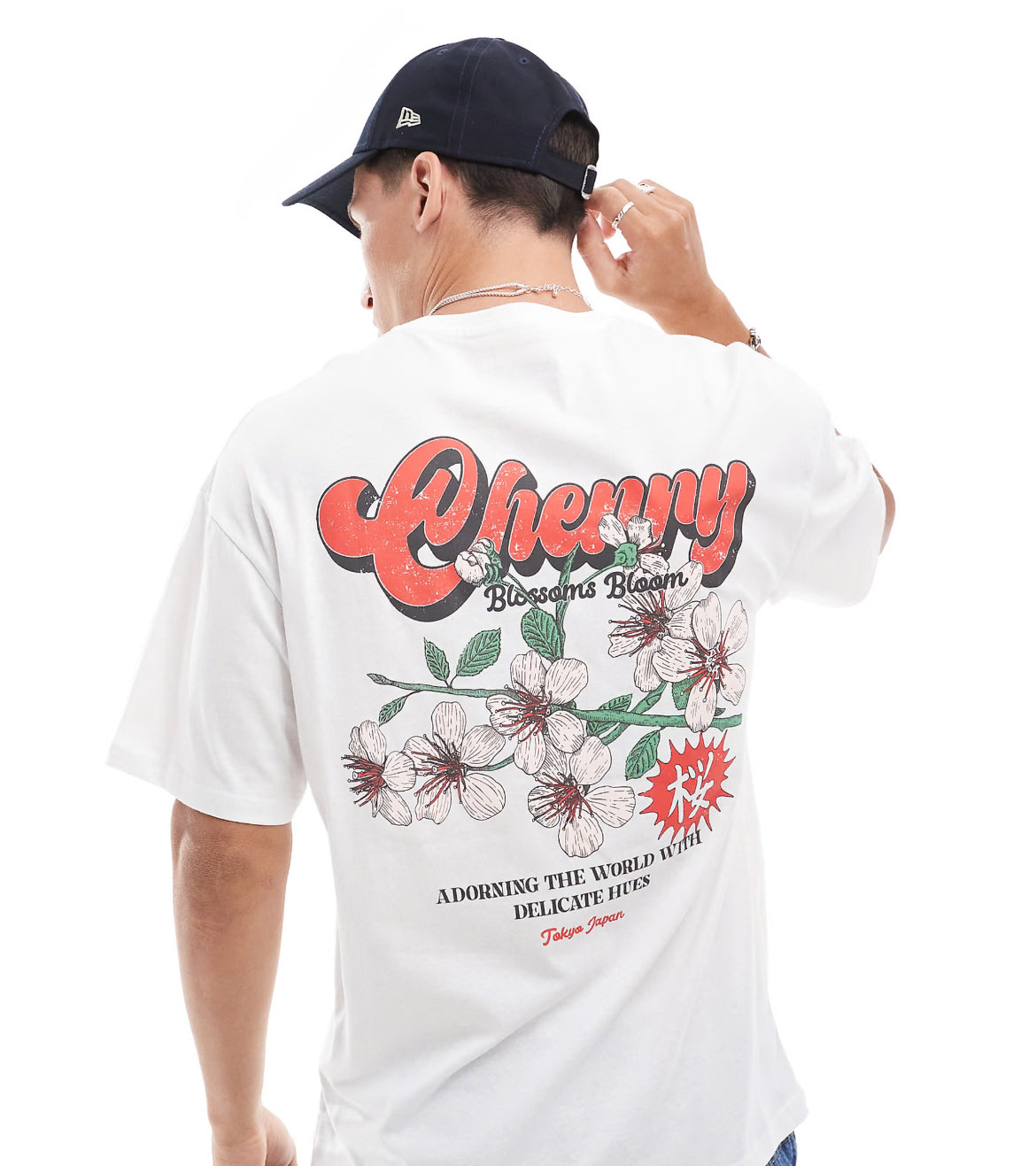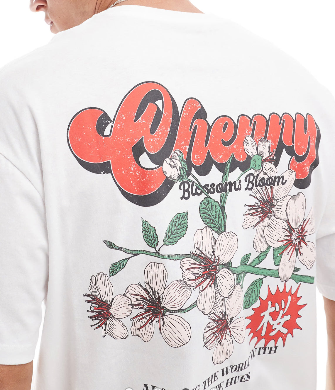 Jack & Jones oversized t-shirt with cherry blossom backprint in white