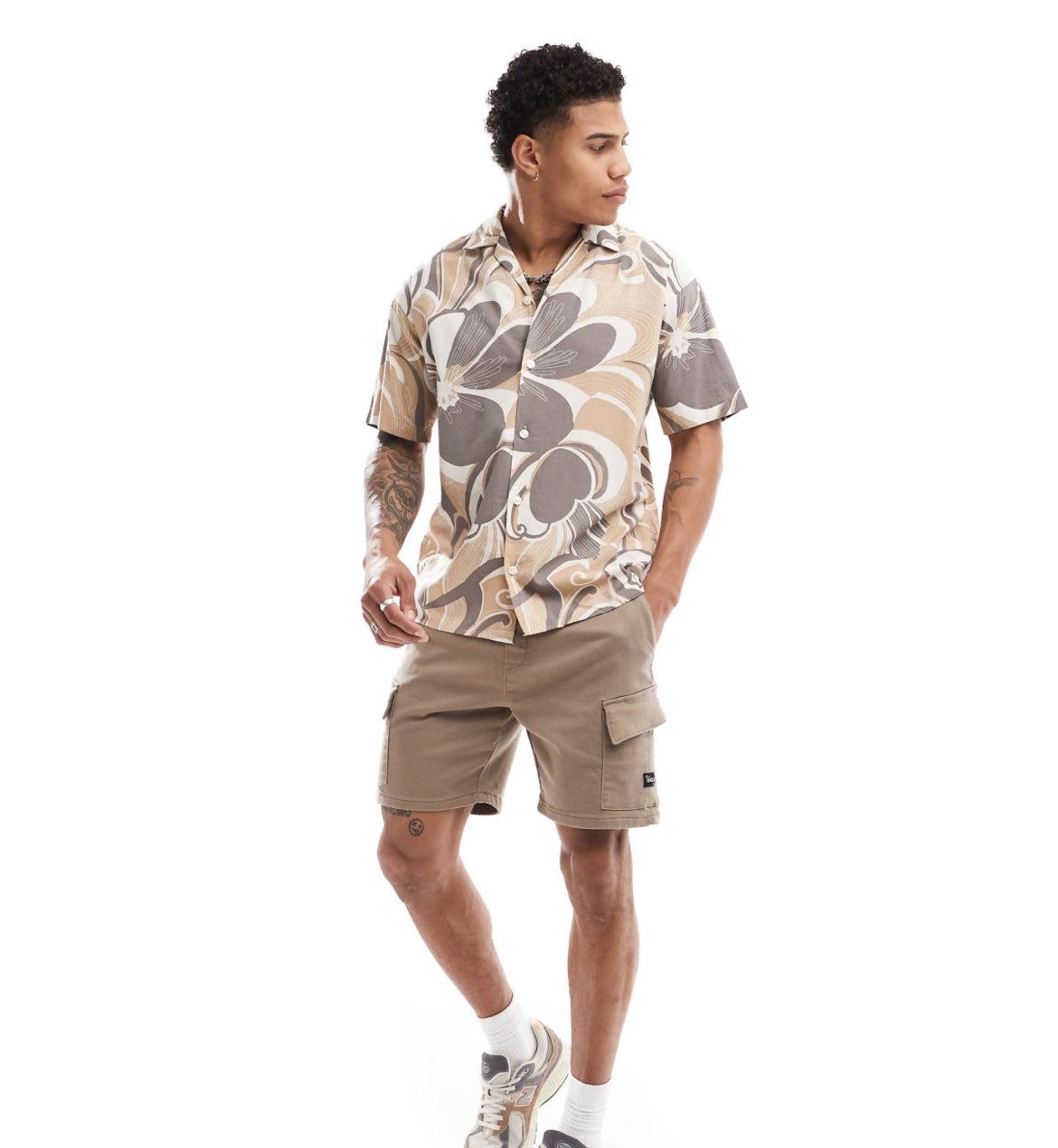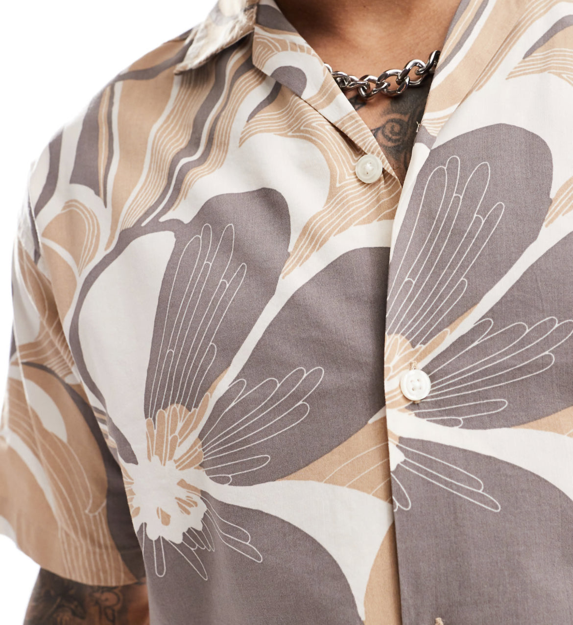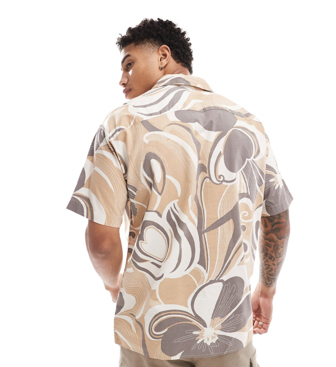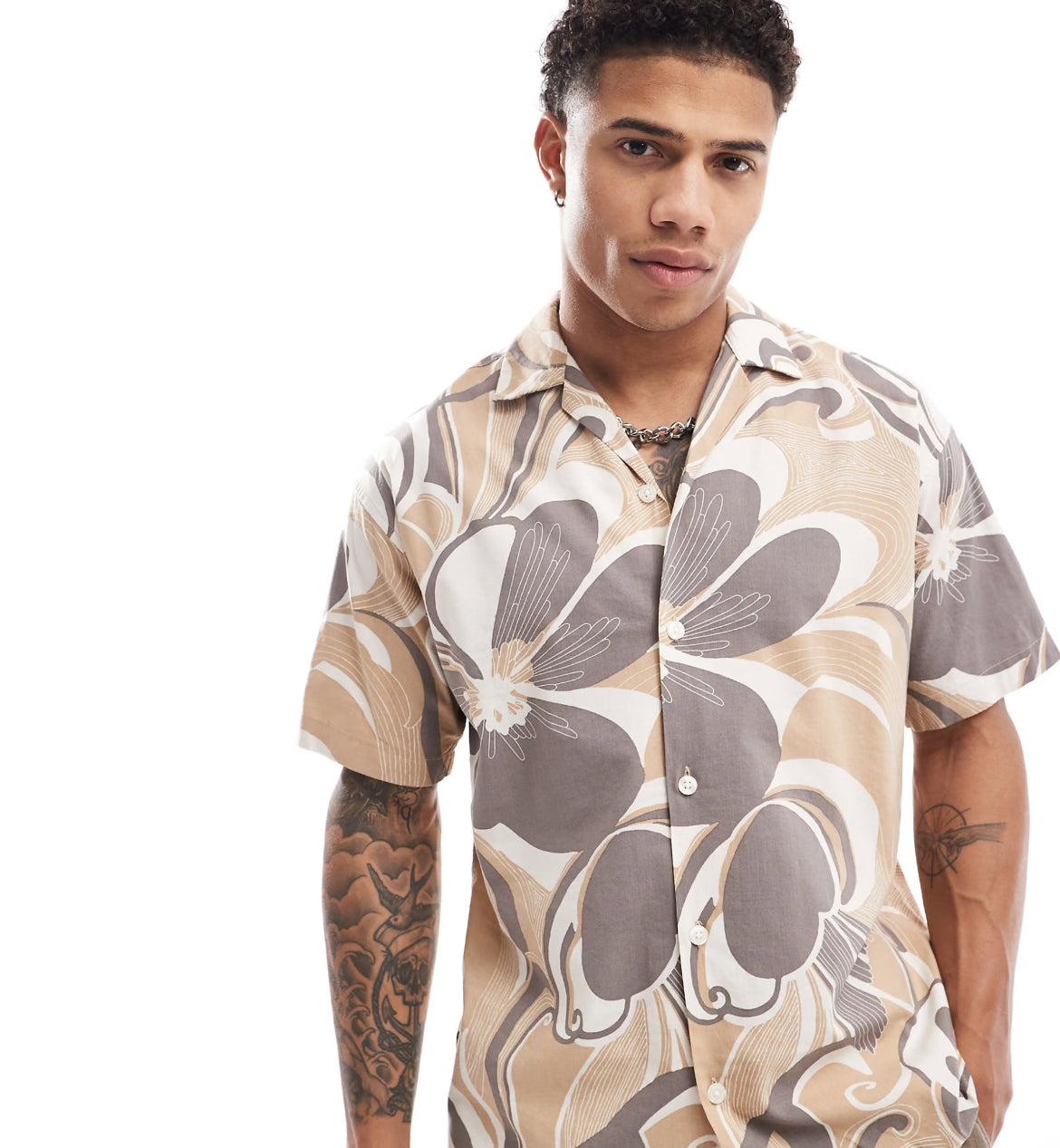 Jack & Jones Premium cotton revere collar shirt in brown retro floral