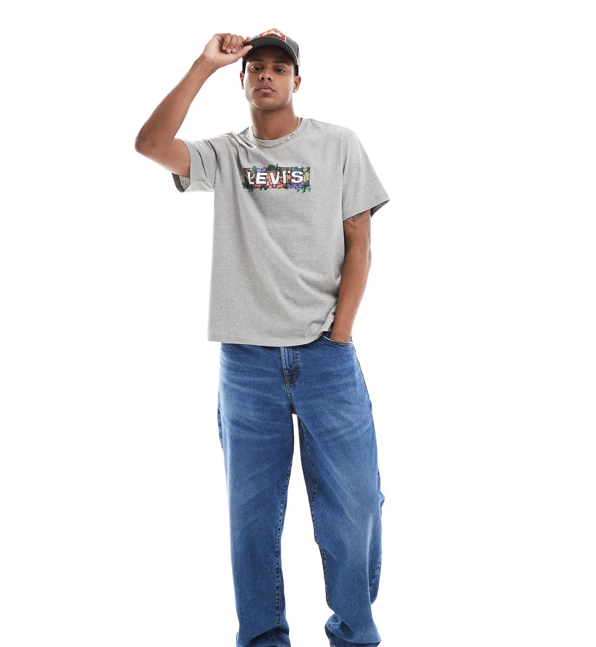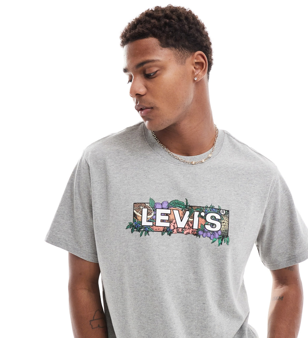 Levi's colour fruit boxtab logo relaxed fit t-shirt in grey marl