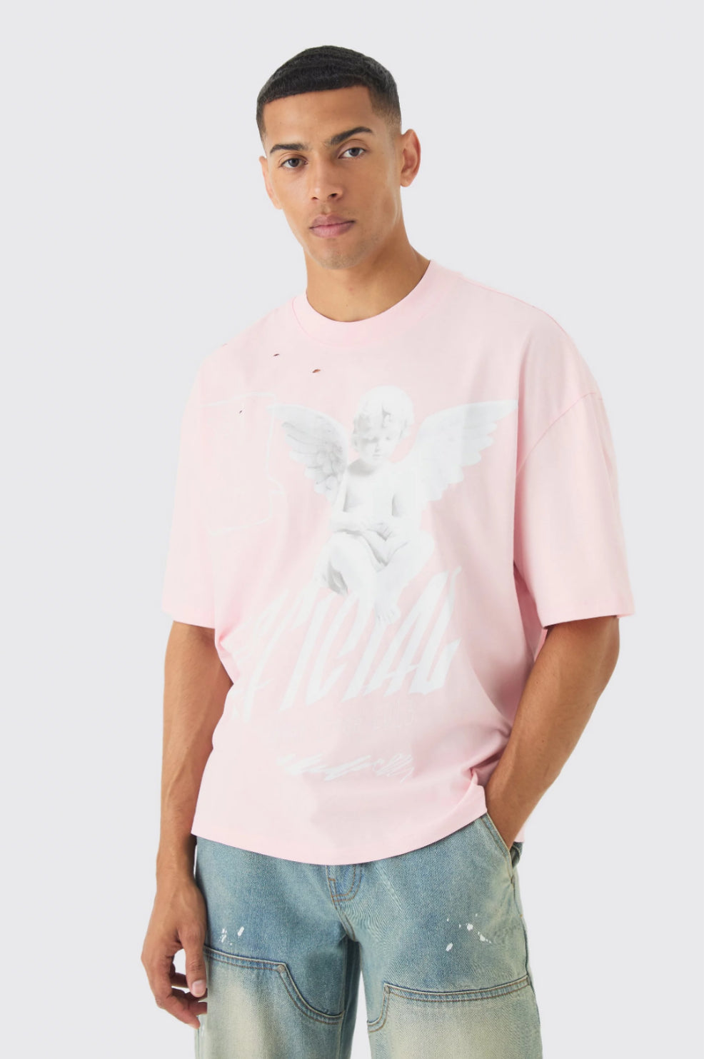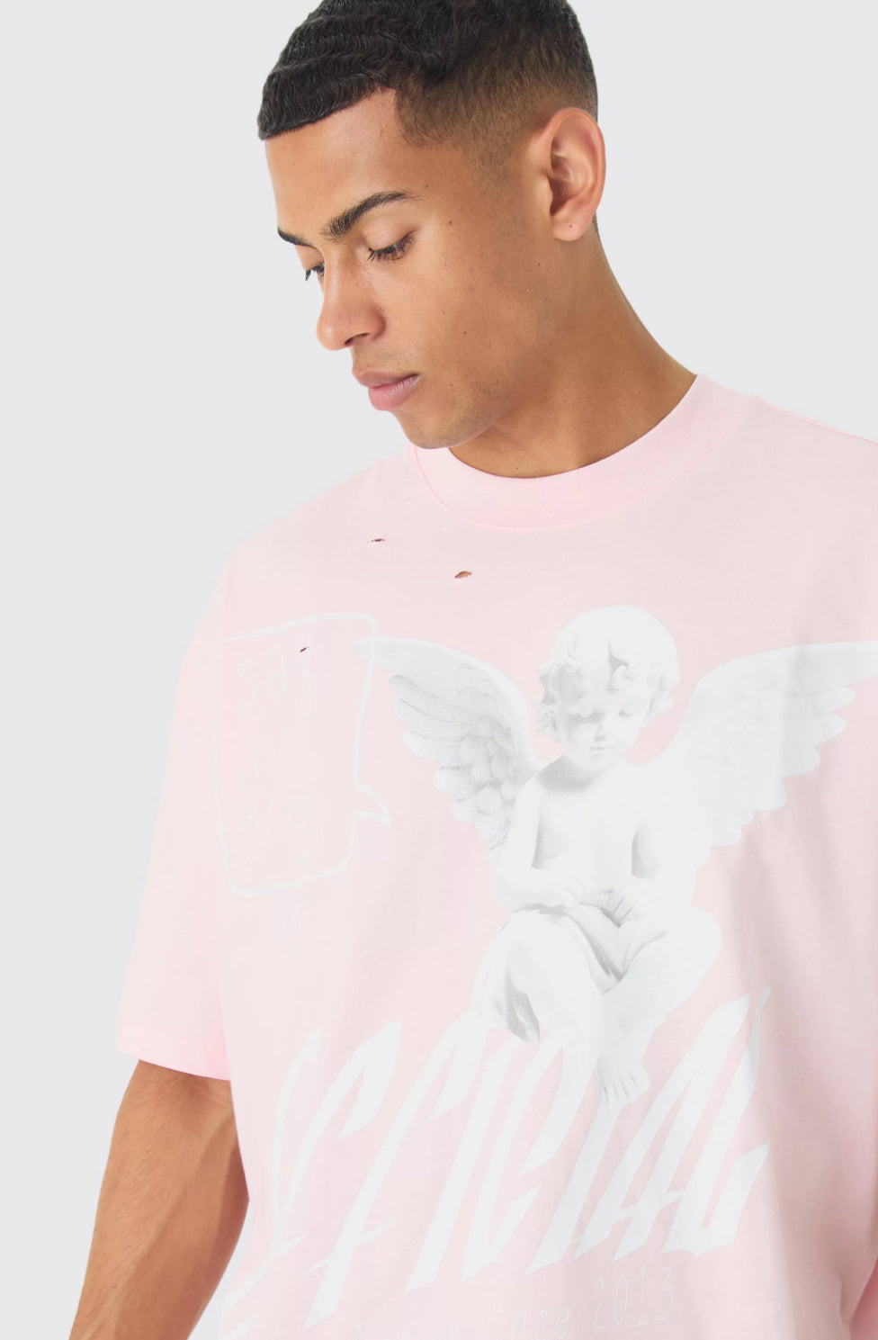 BoohooMan Oversized Boxy Distressed Heavyweight Renaissance Graphic T-shirt