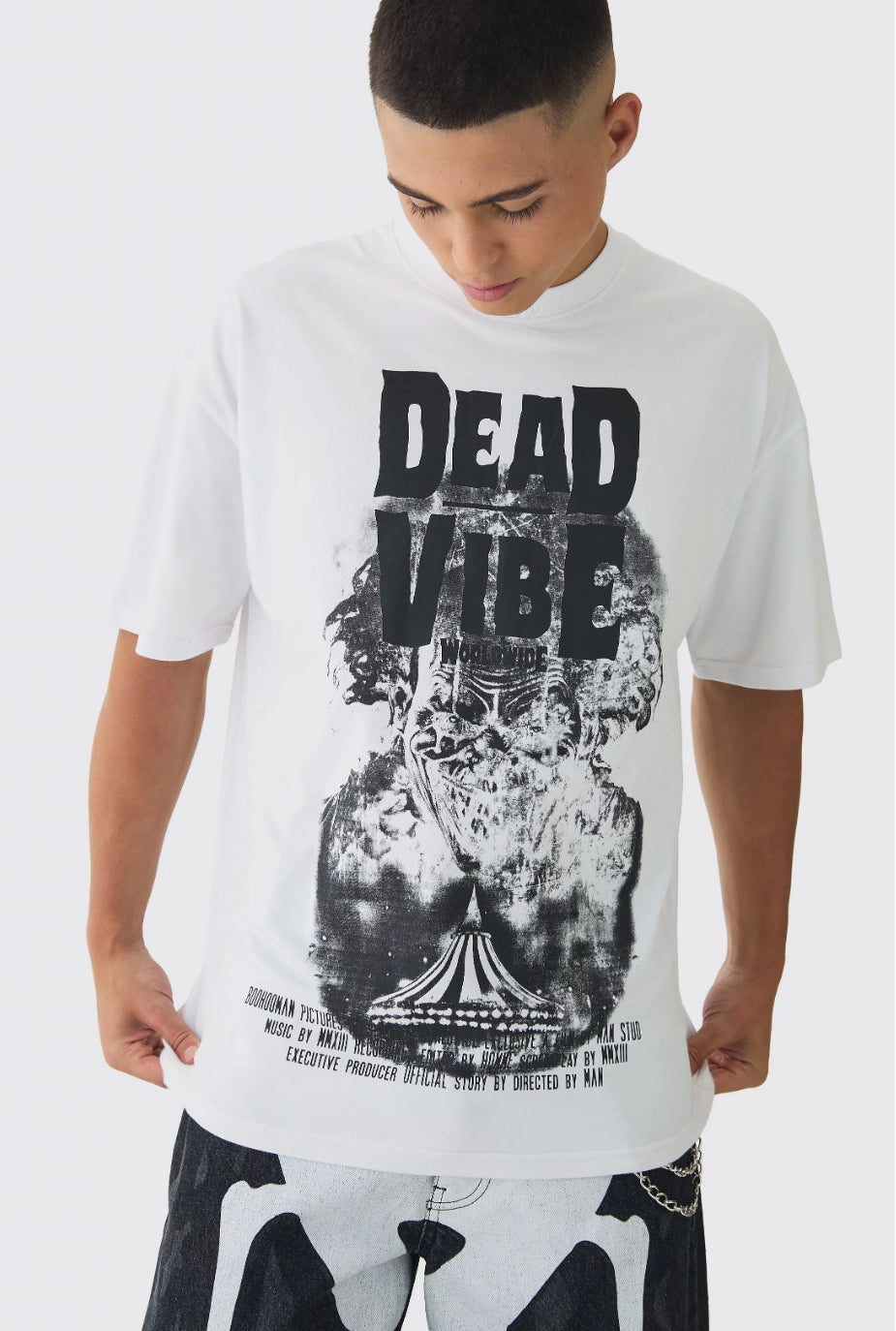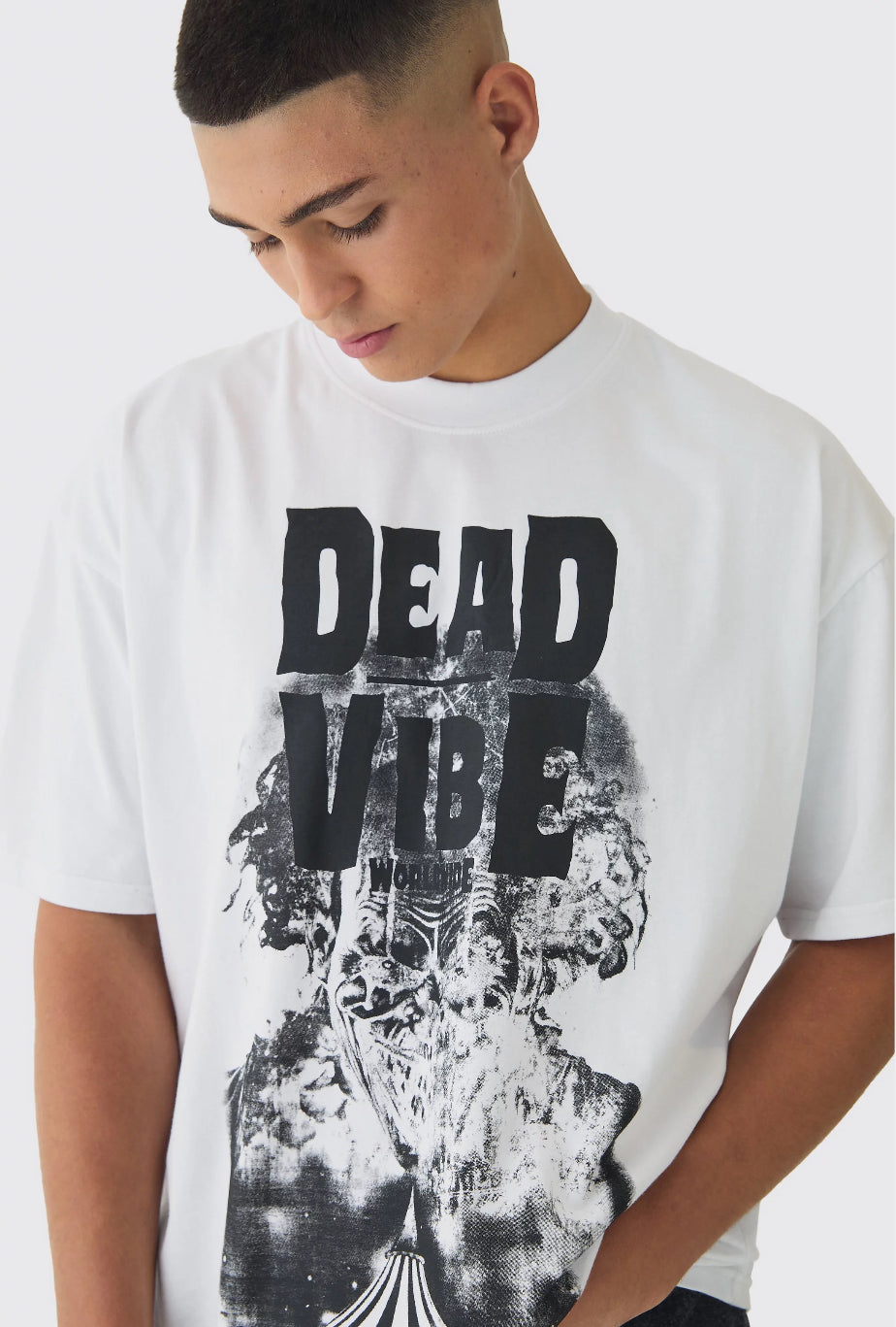 BoohooMan Oversized Extended Neck Dead Vibe Print T-Shirt