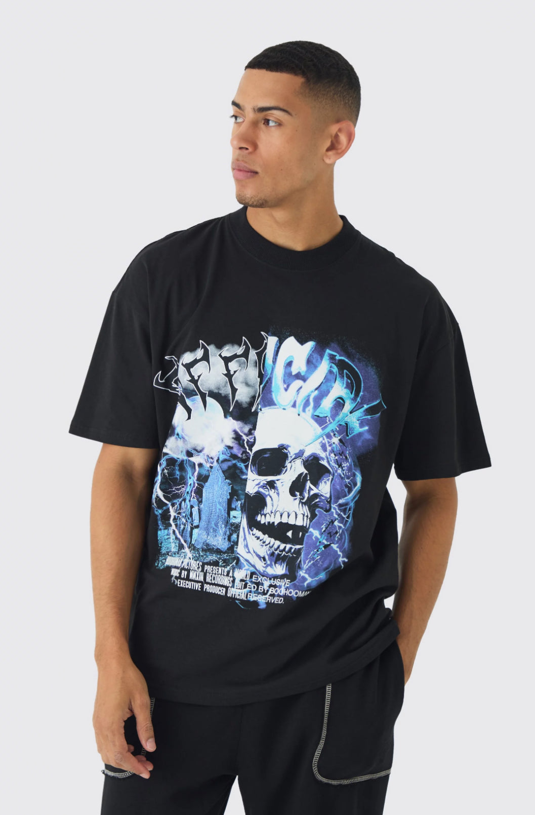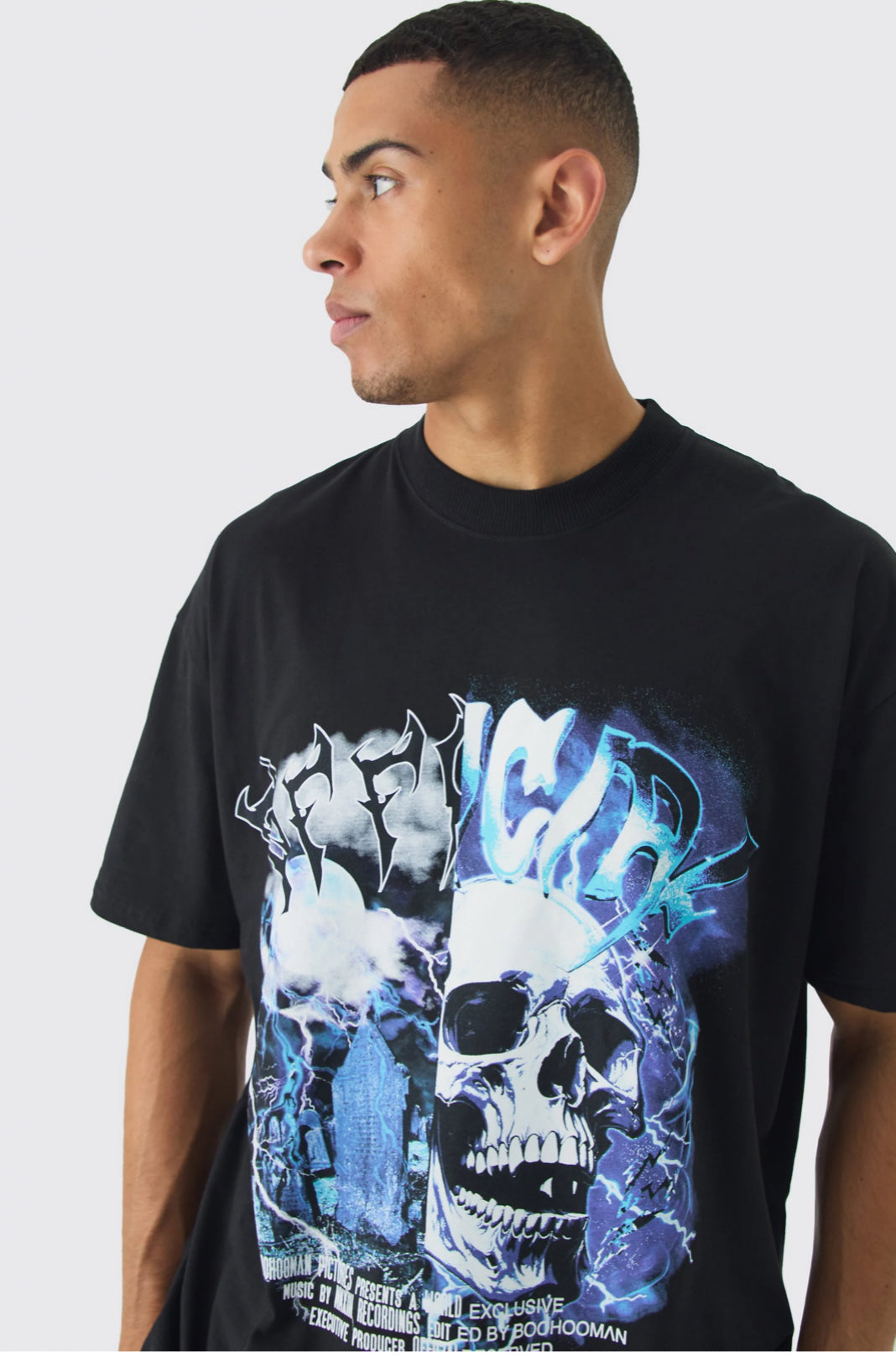 BoohooMan Oversized Extended Neck Gothic Print T-Shirt