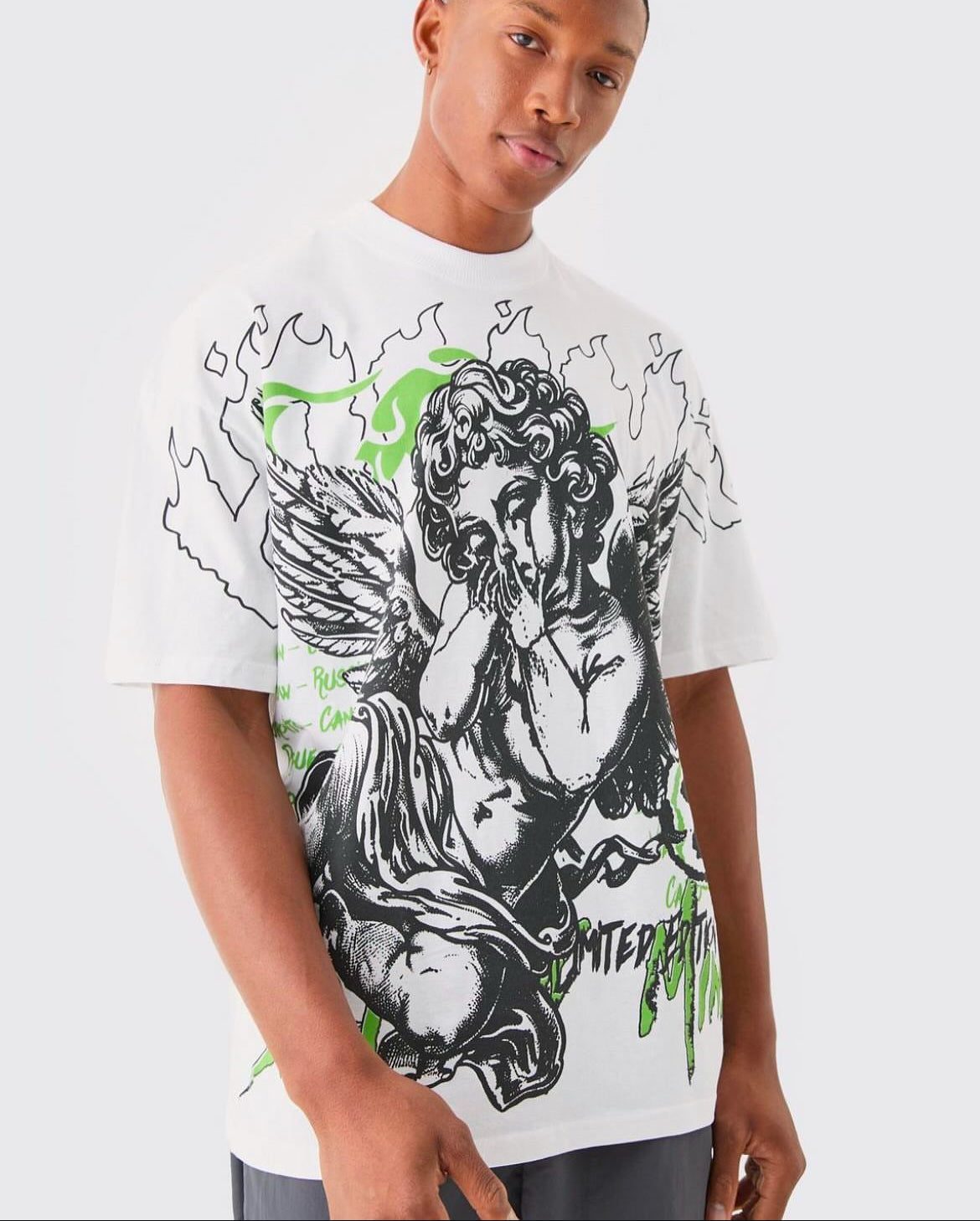 BoohooMan Oversized Large Scale Graffiti Renaissance Print T-shirt