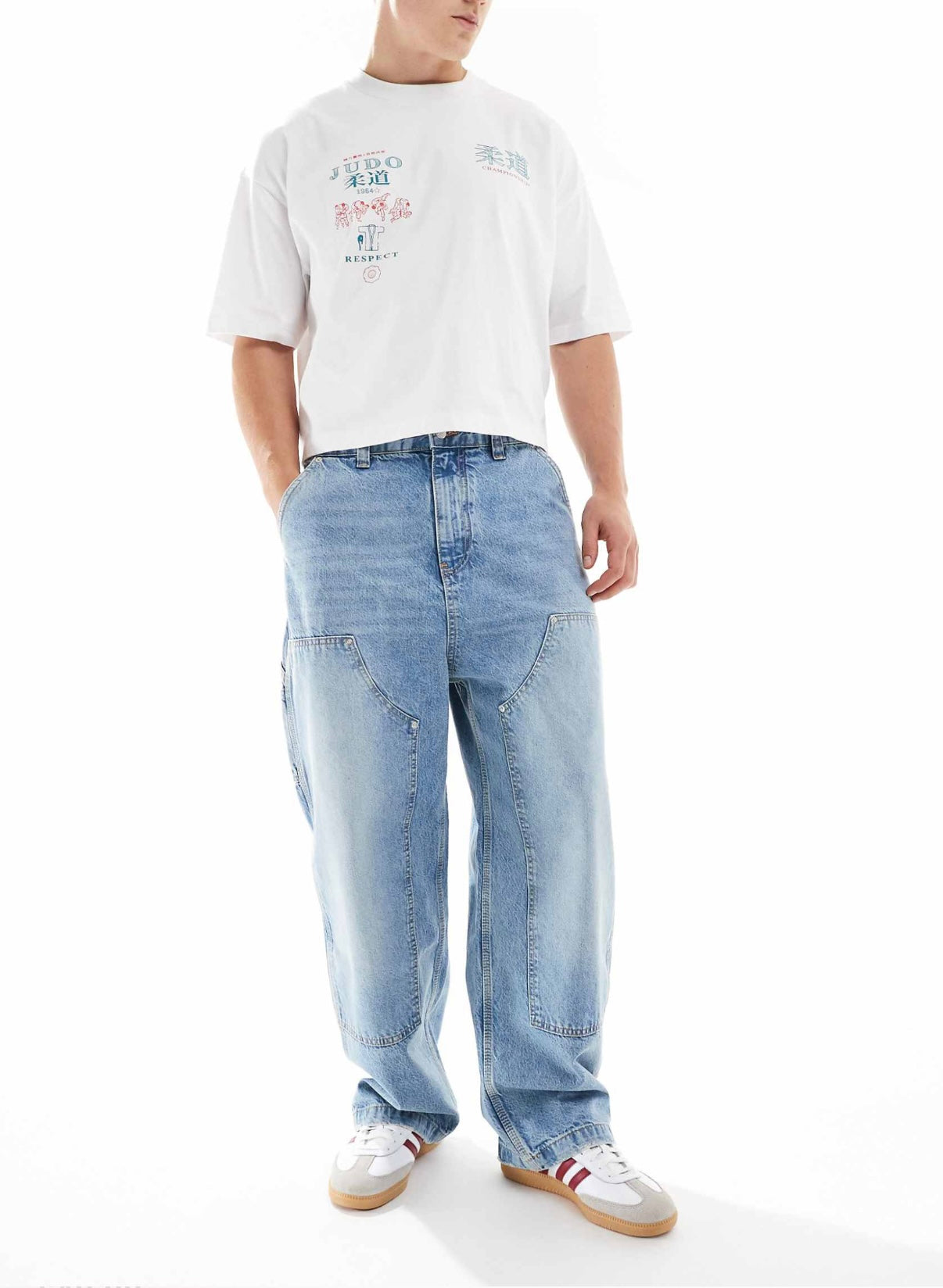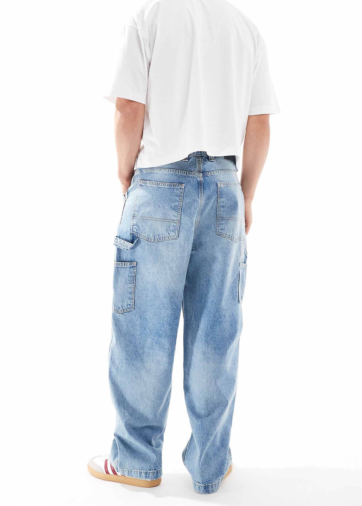 Pull&Bear baggy front pocket detail jeans in washed blue