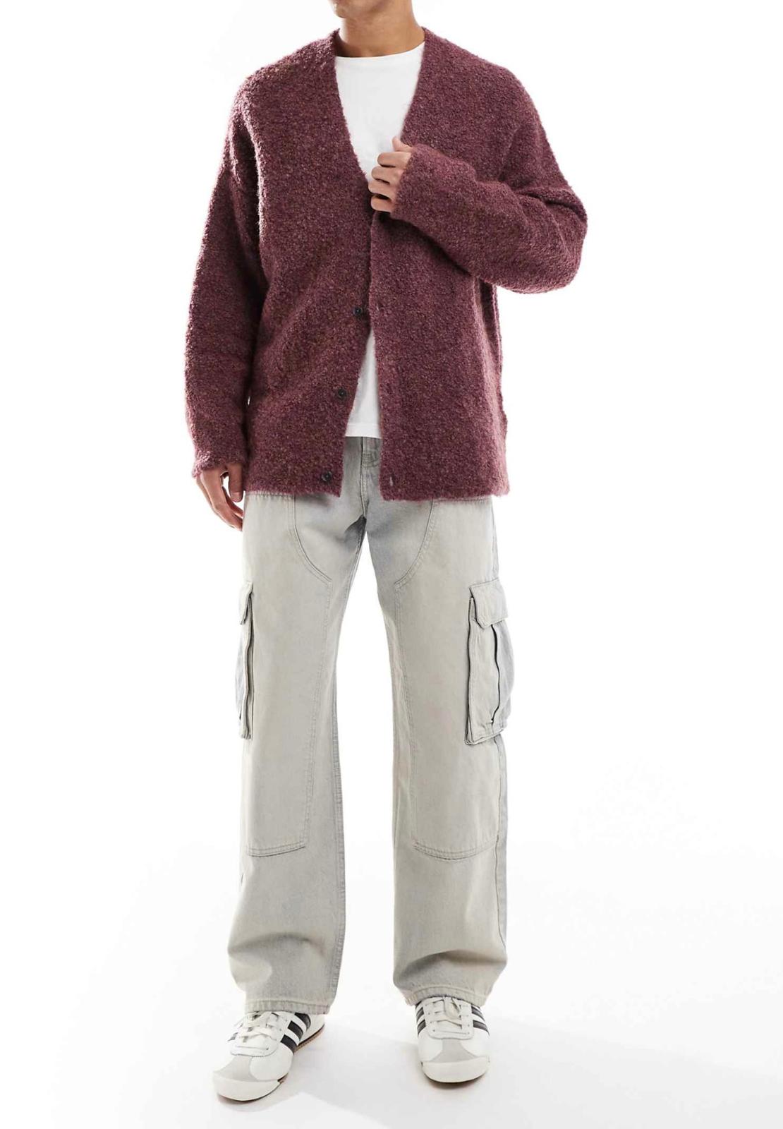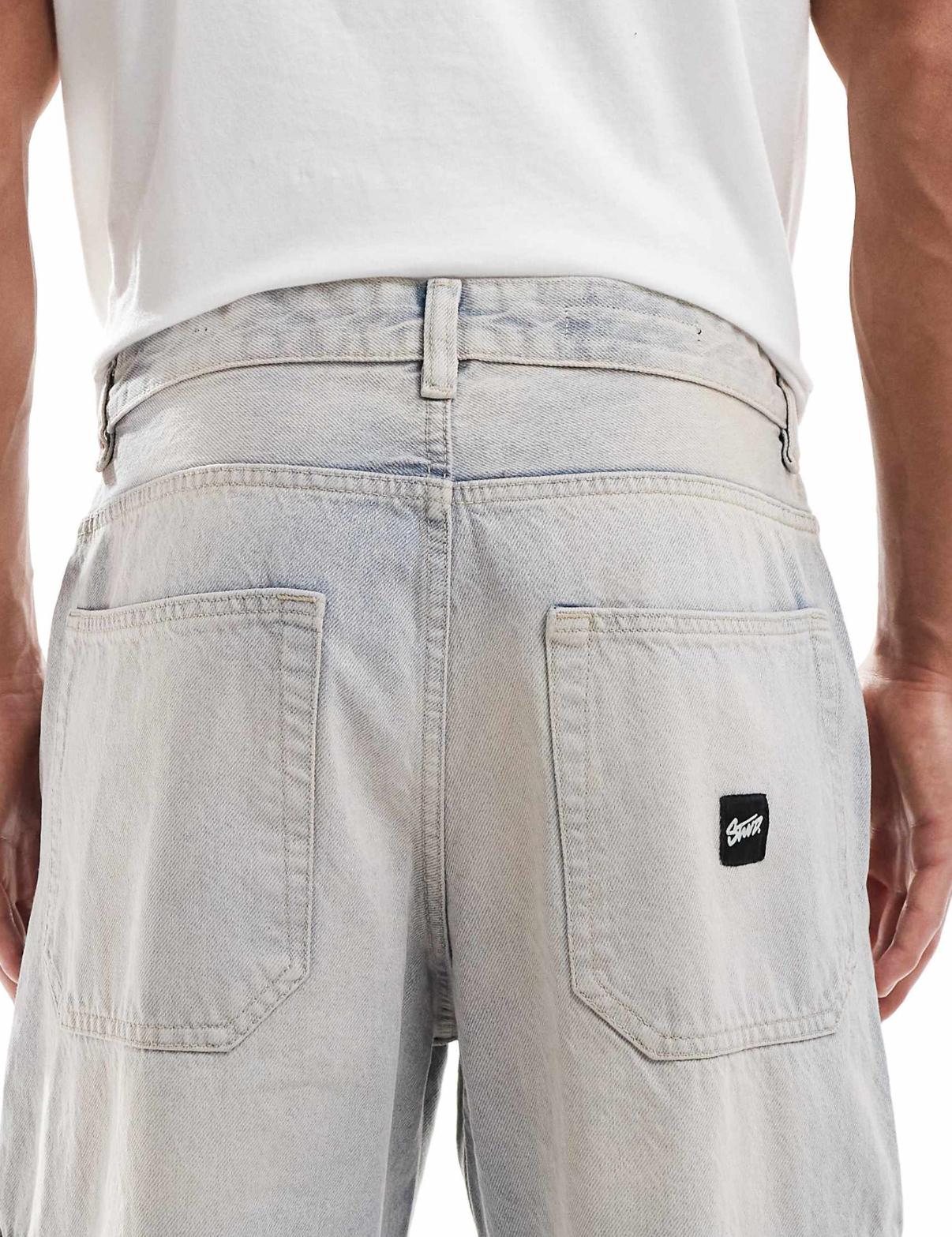 Pull&Bear heavy washed wide leg cargo jeans in light blue