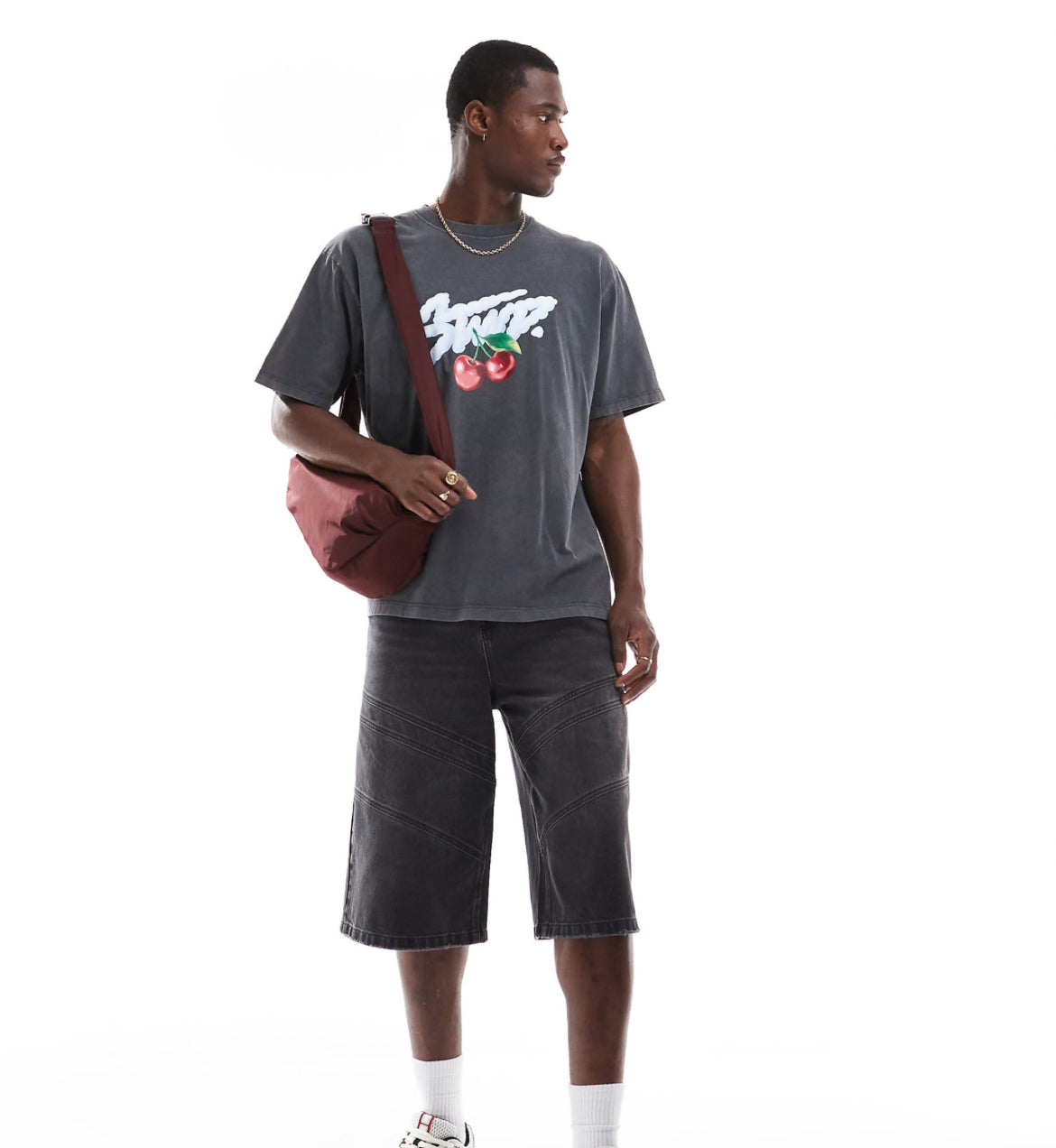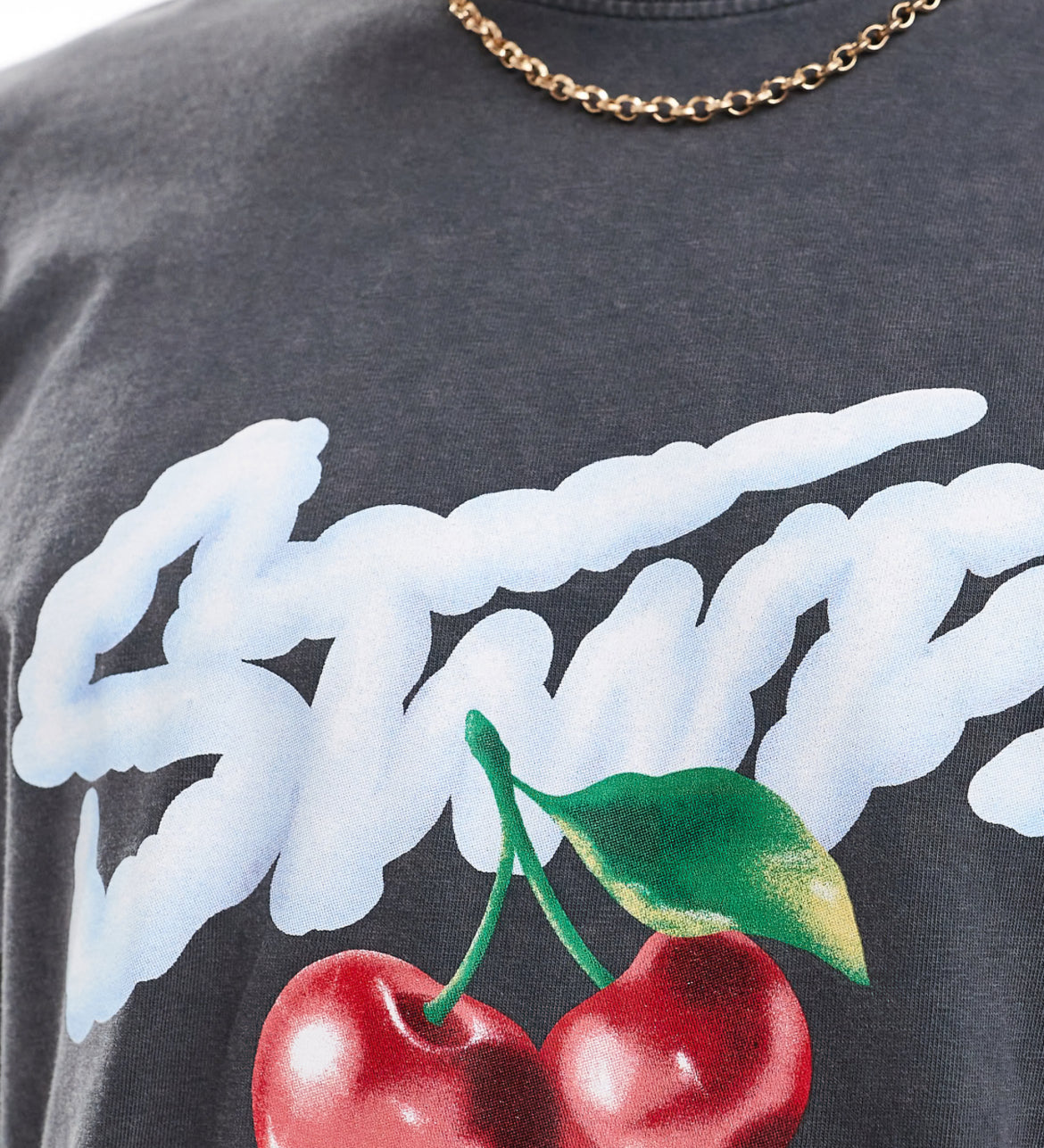 Pull&Bear STWD cherry printed t-shirt in charcoal