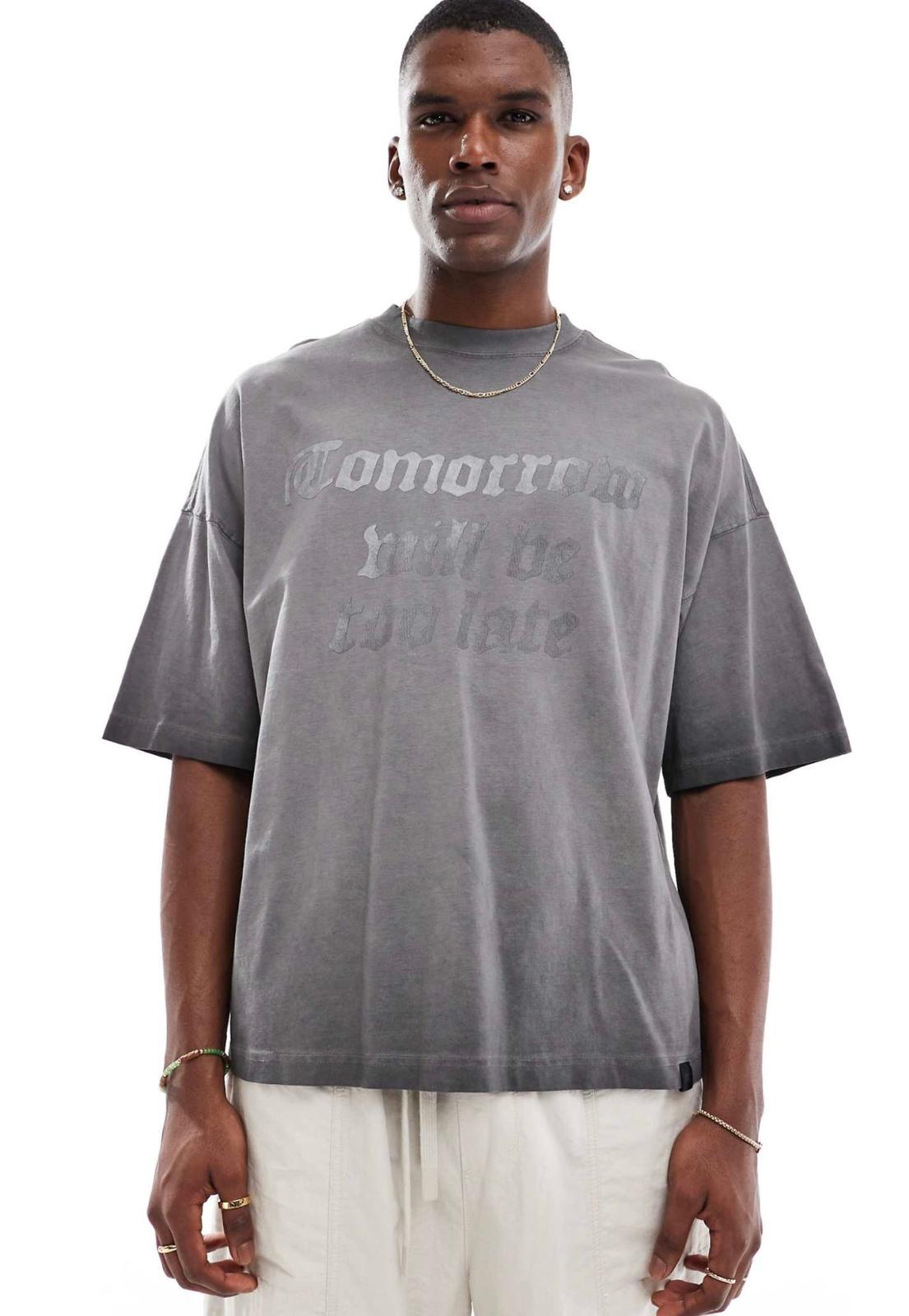 Pull&Bear tomorrow will be late front printed t-shirt in washed black