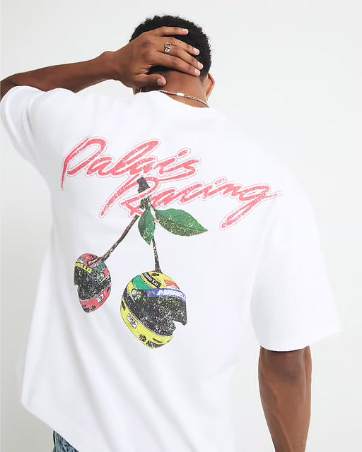 River Island Mens T-Shirt White Oversized Fit Racing Cherry