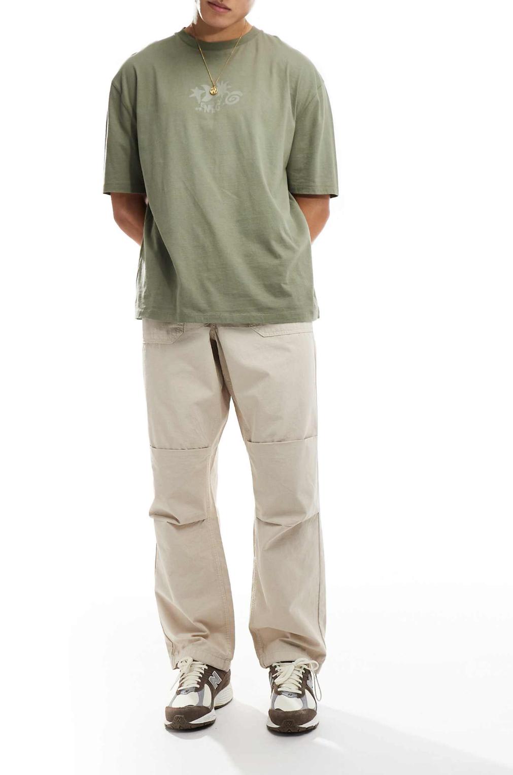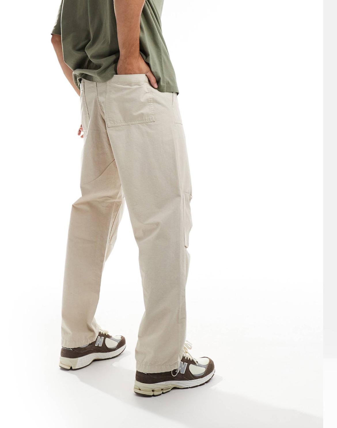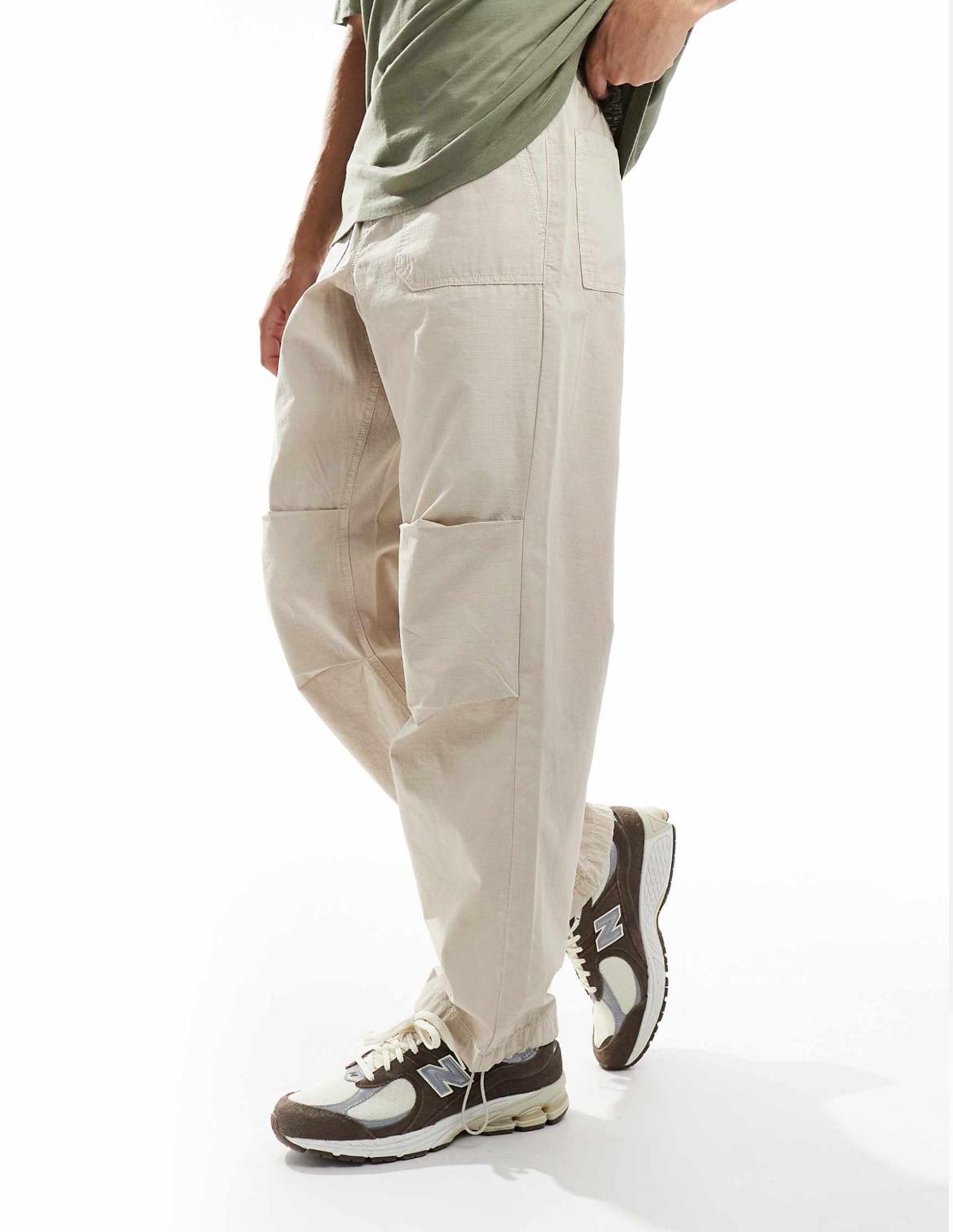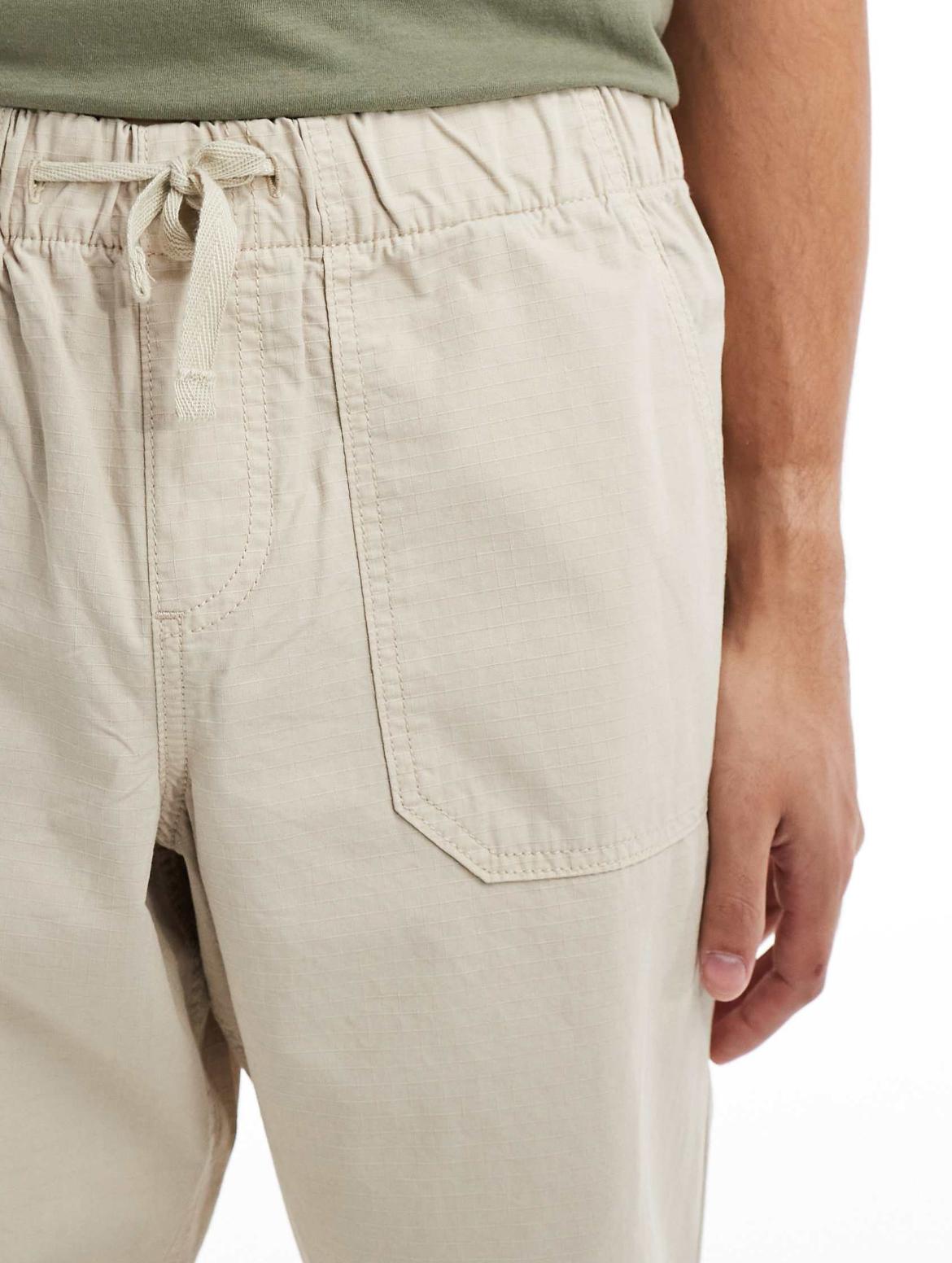 Selected Homme loose fit elasticated waistband ripstop trousers in stone