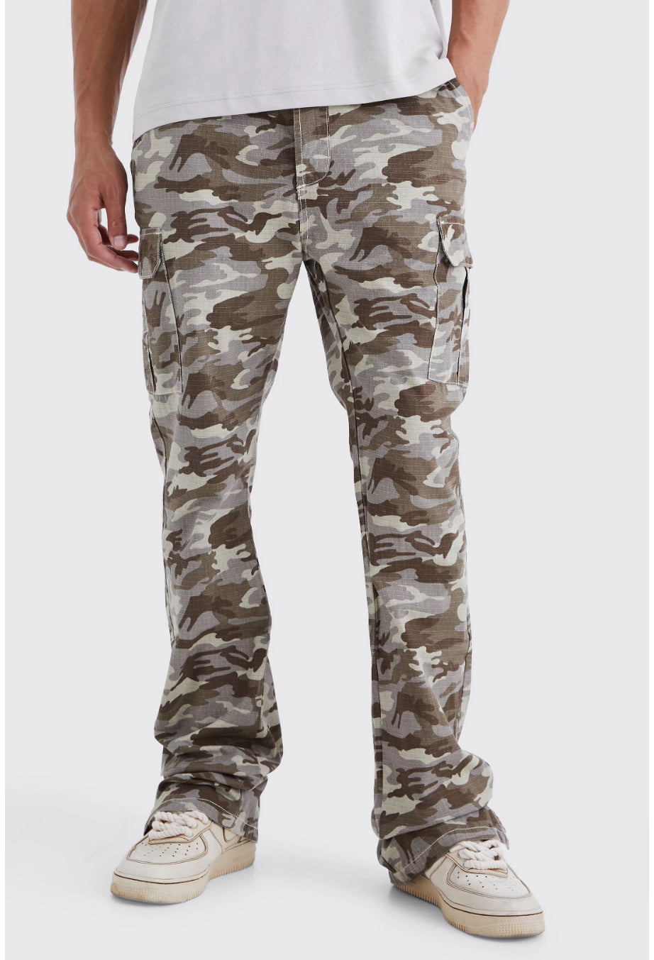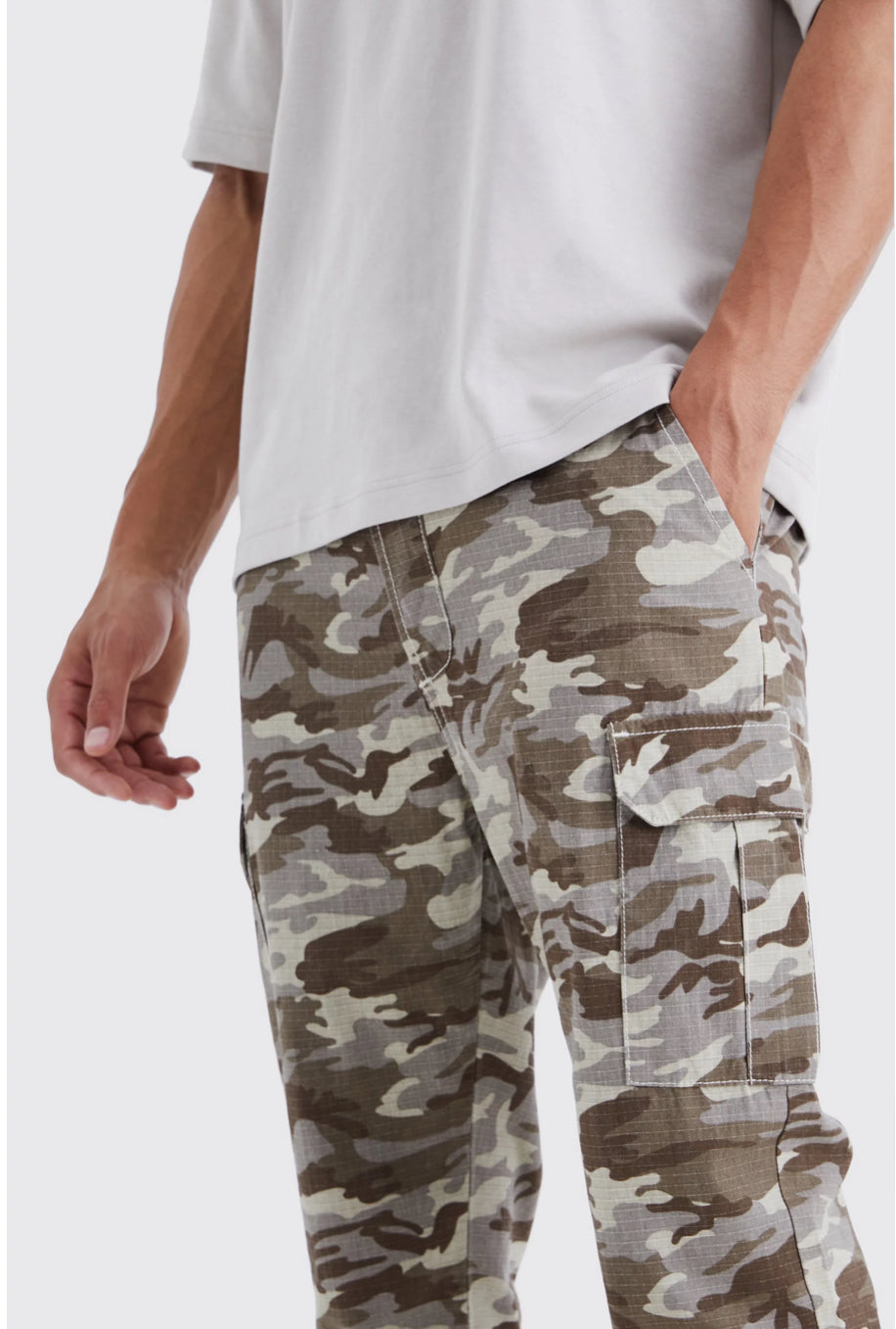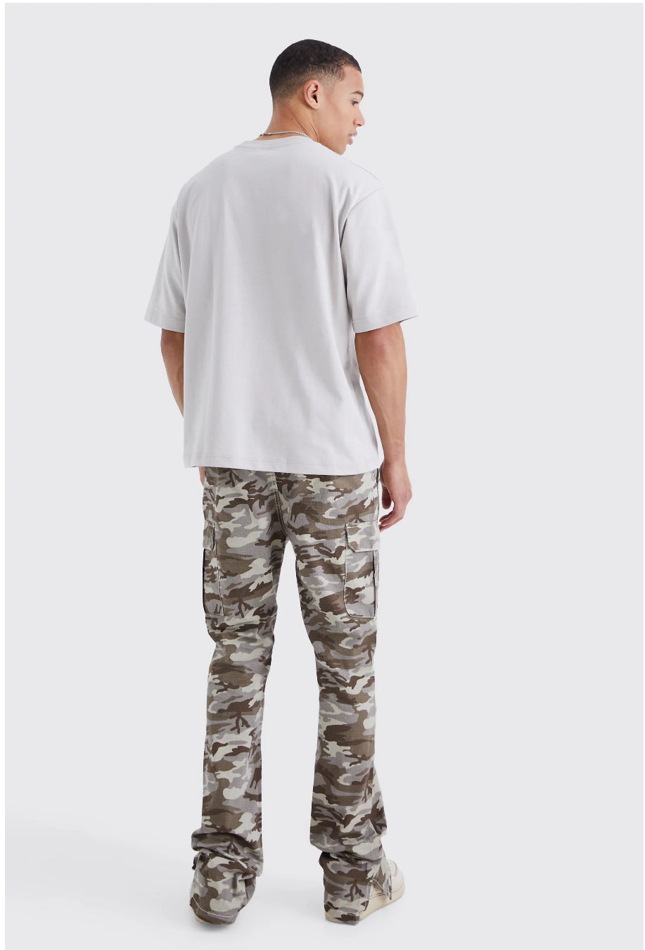 Tall Slim Stacked Ripstop Split Hem Cargo Camo Trouser