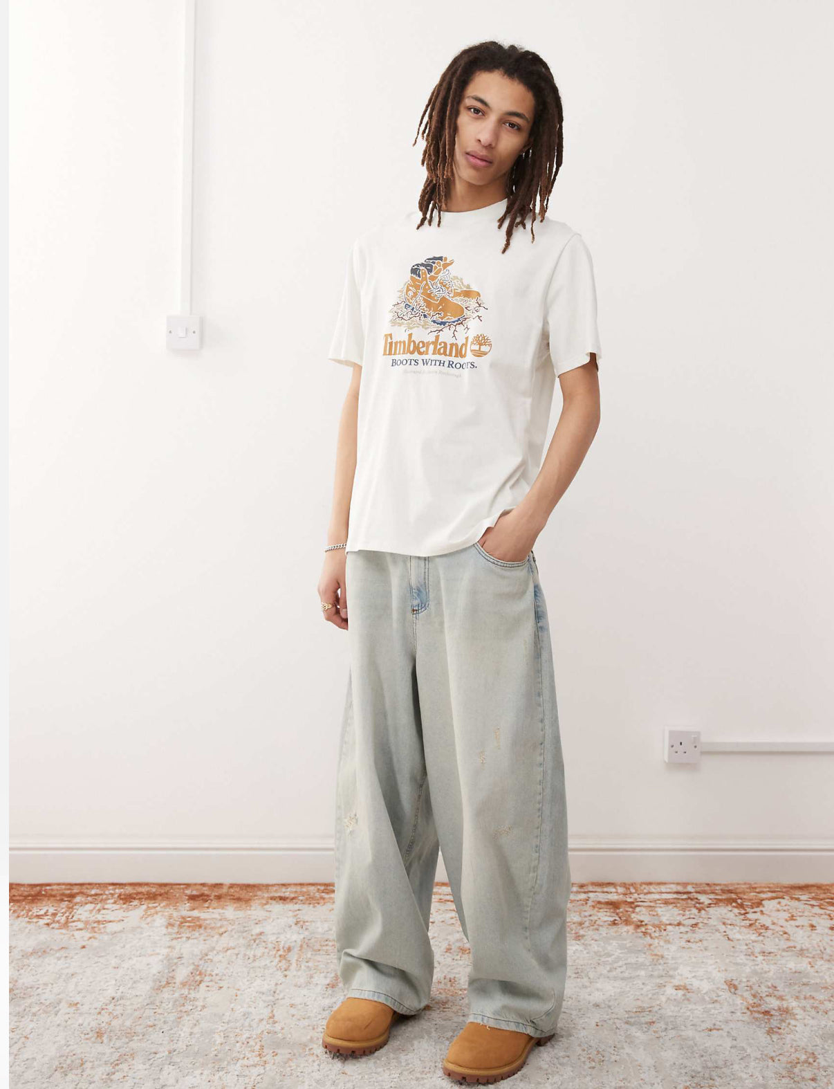 Timberland Boots With Roots graphic t-shirt in white