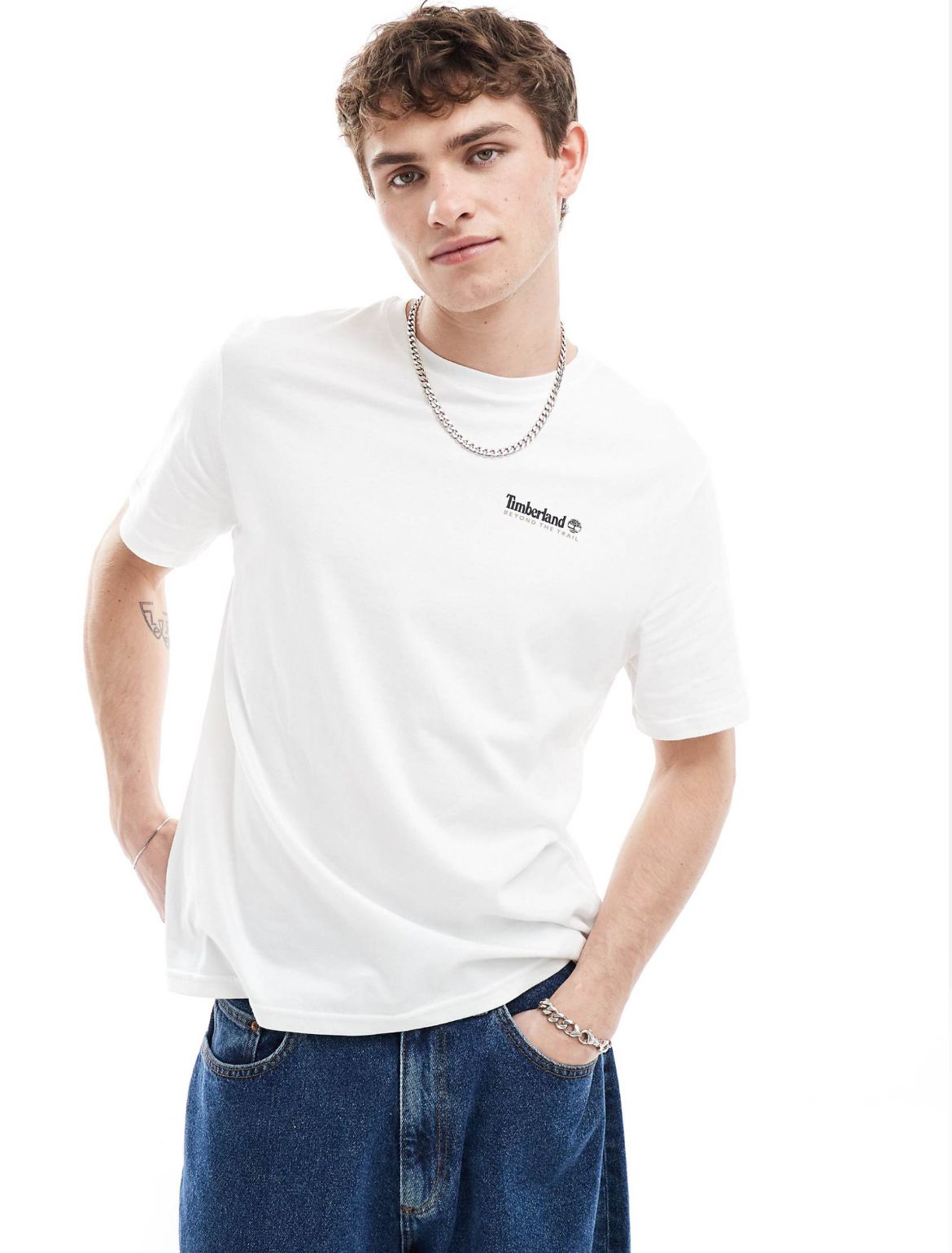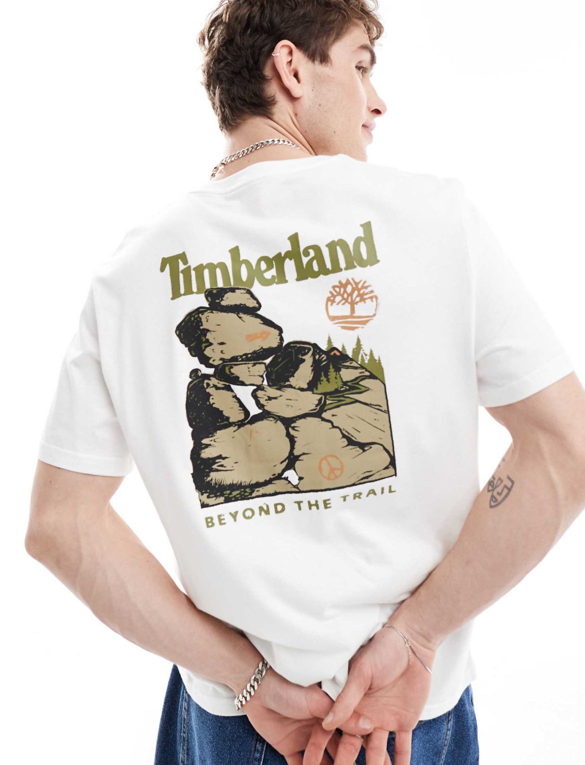 Timberland large boulder back print oversized t-shirt in white